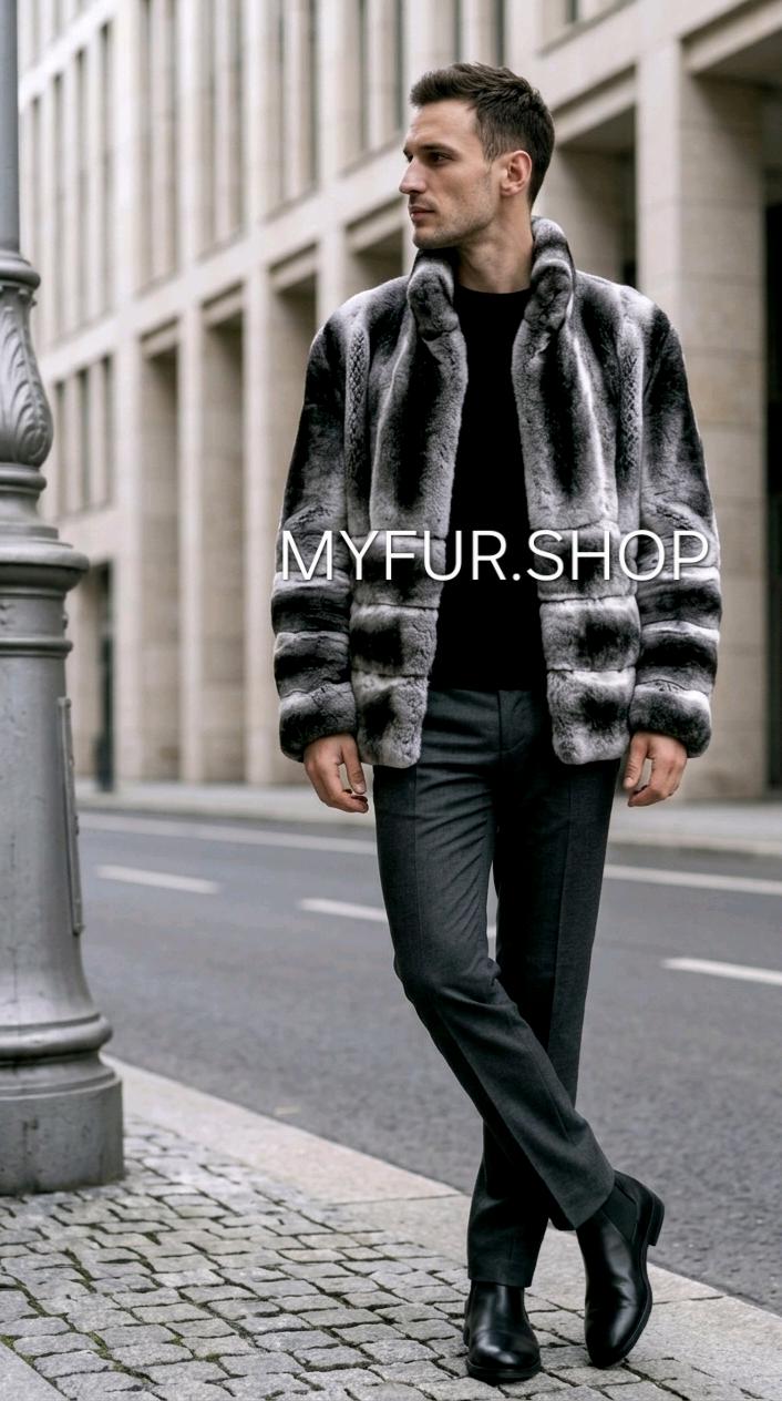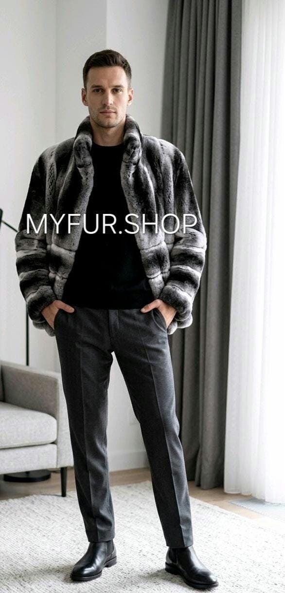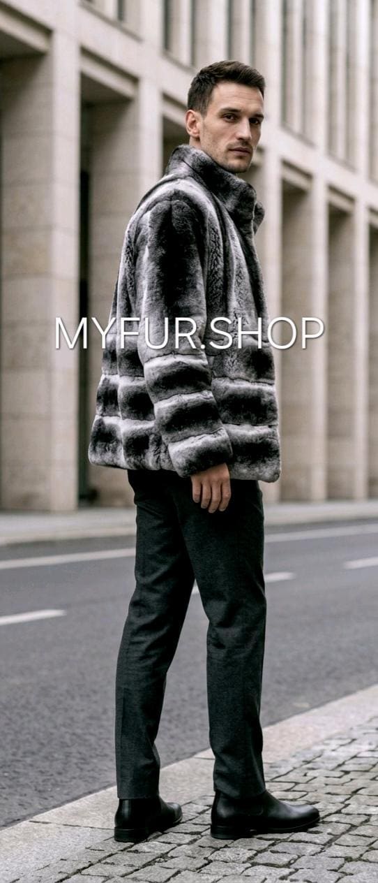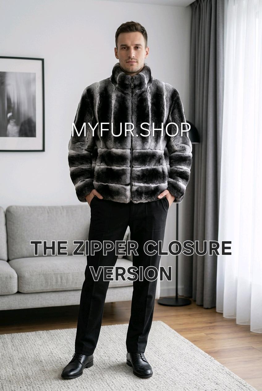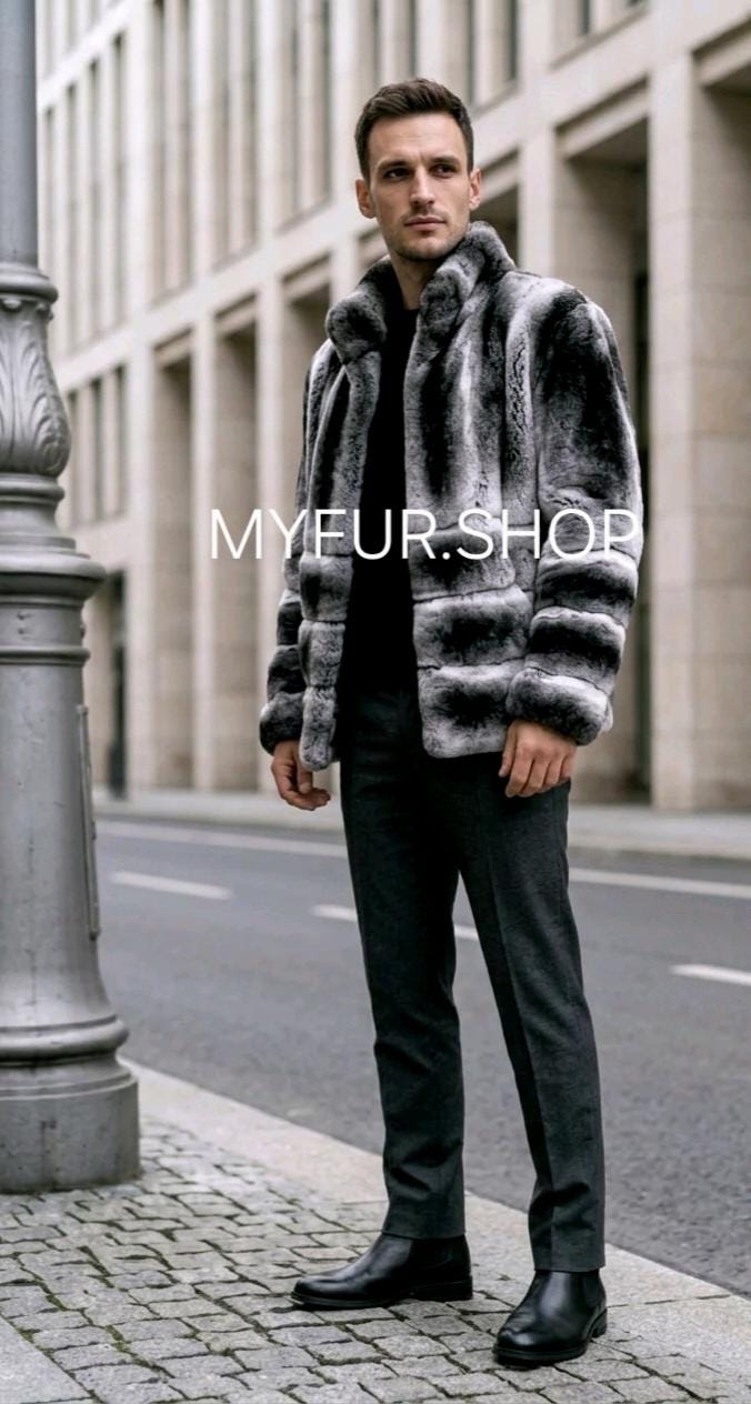 Super Modern Natural Real Men's Fur short jacket from Excellent Quality Fullpelts REX! Stand up collar!