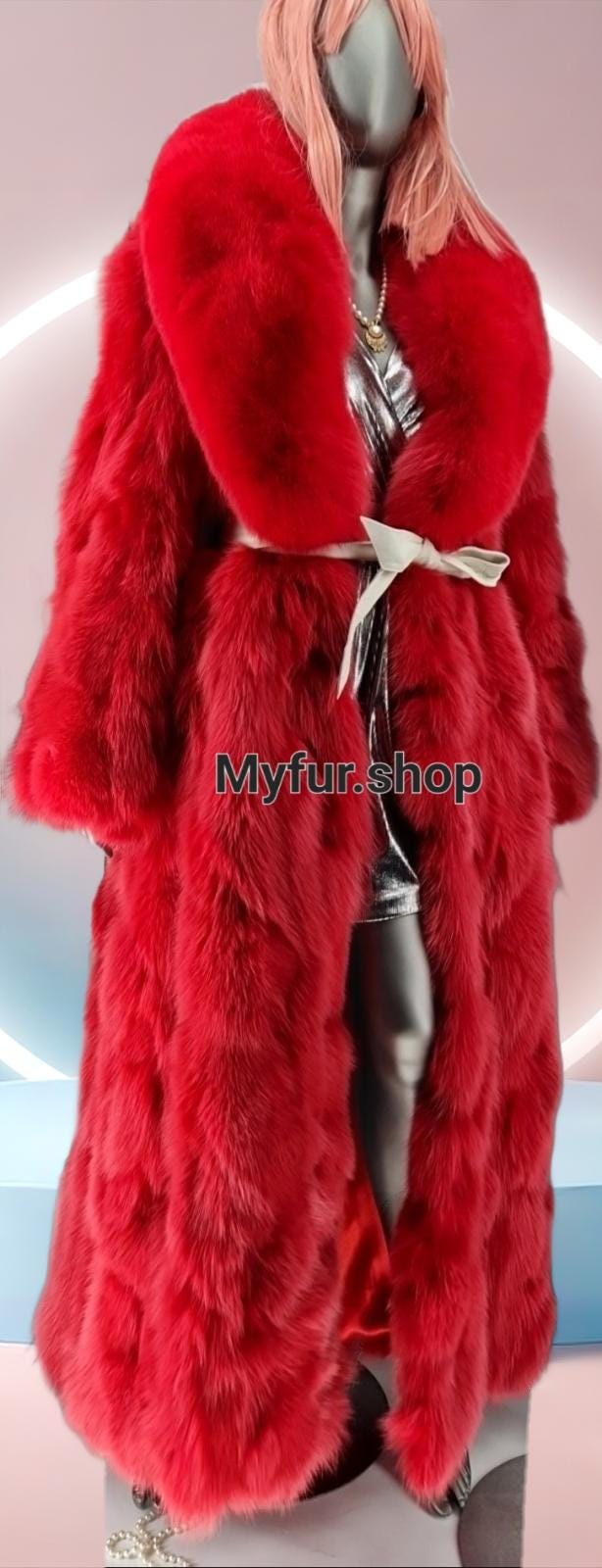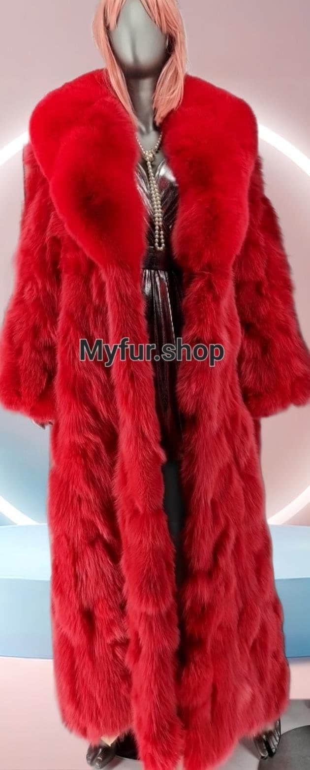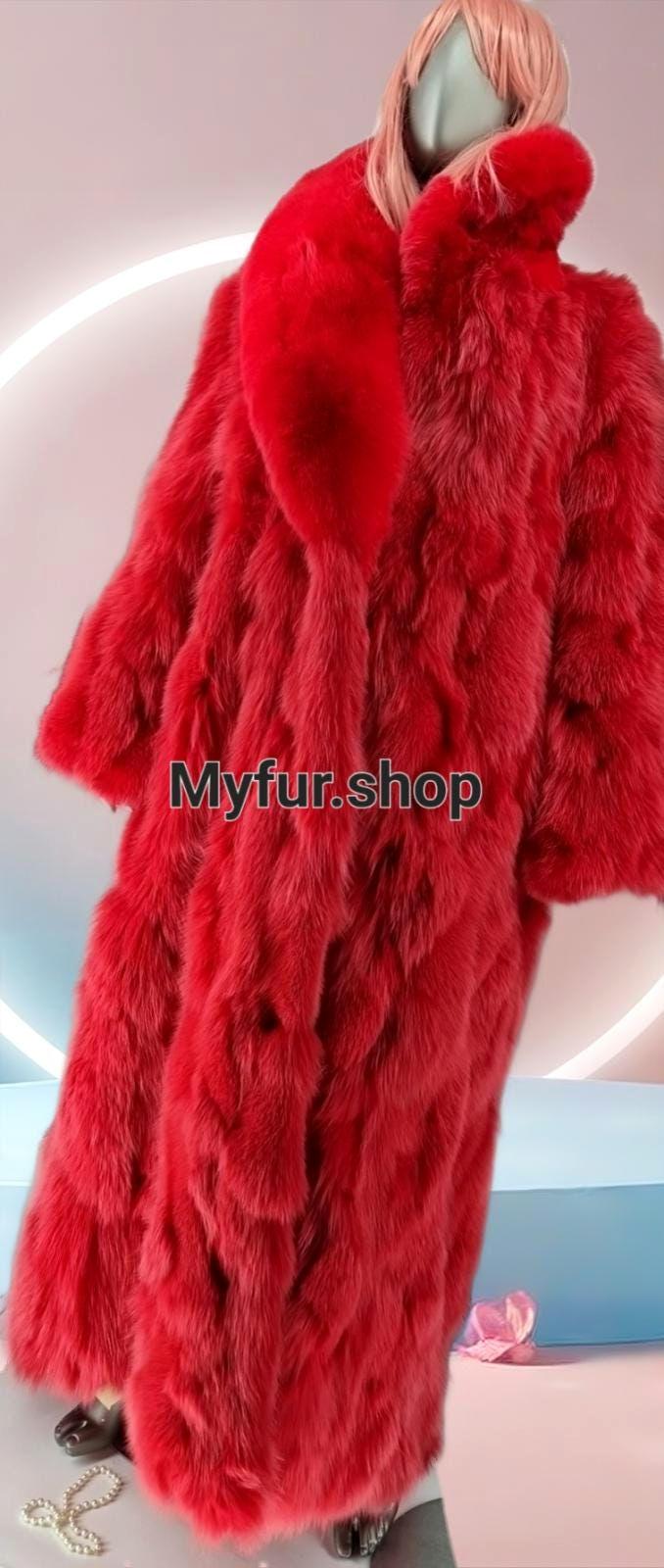 One of a kind GORGEOUS Long bright RED colored Fluffy FOX parts Coat!