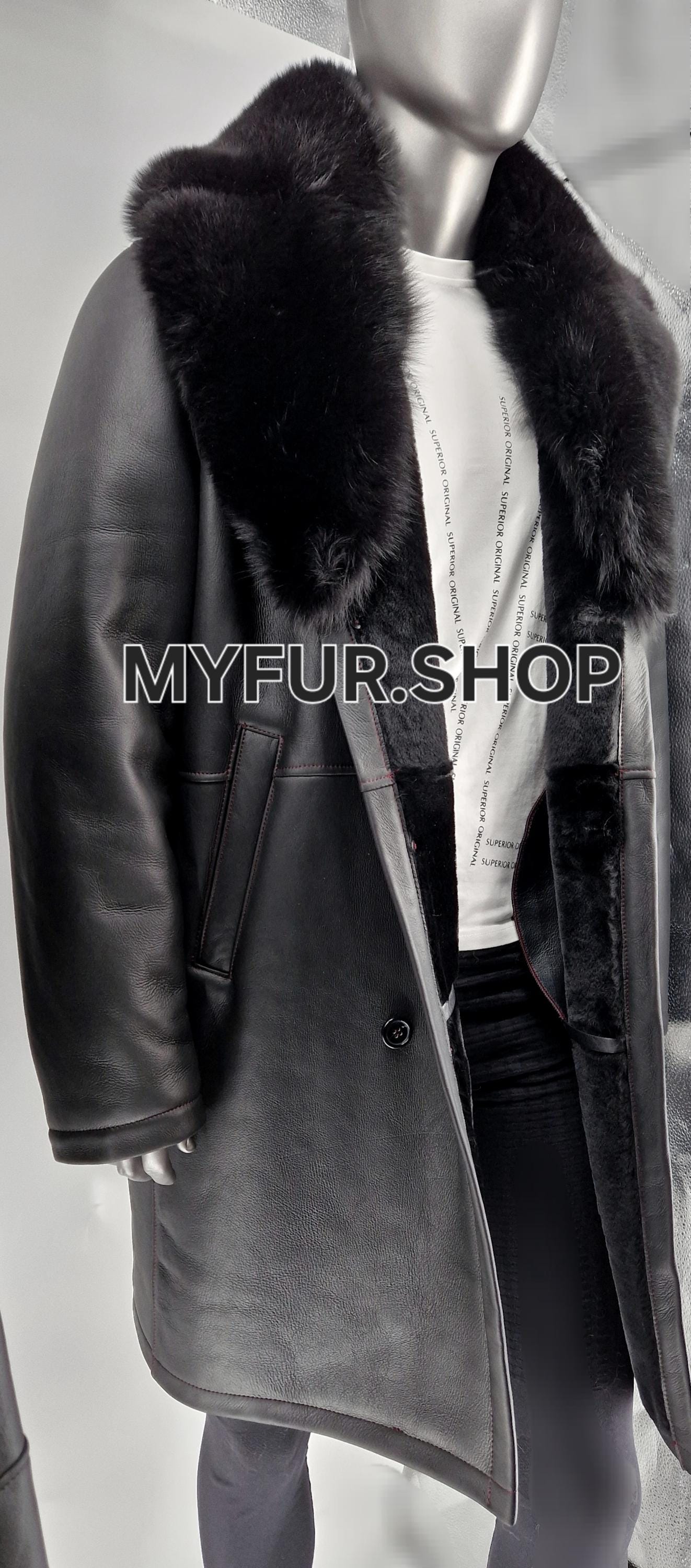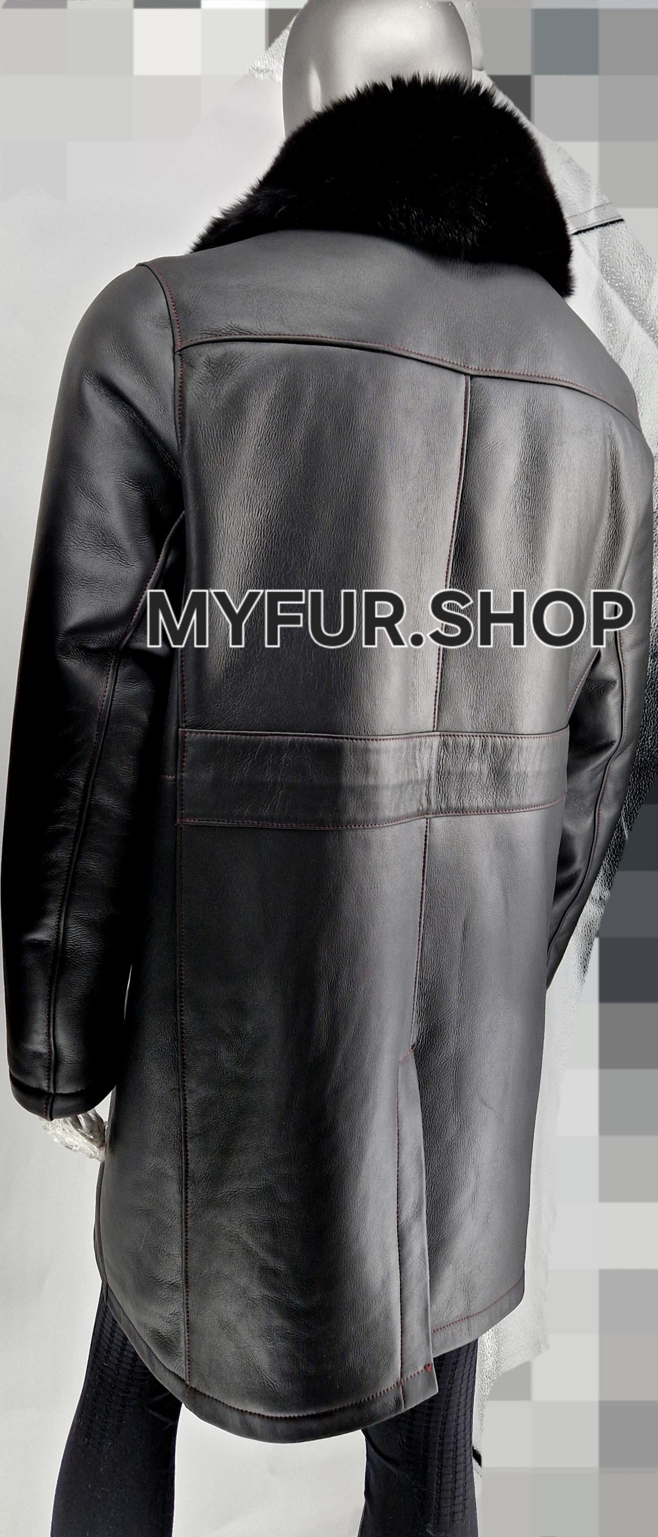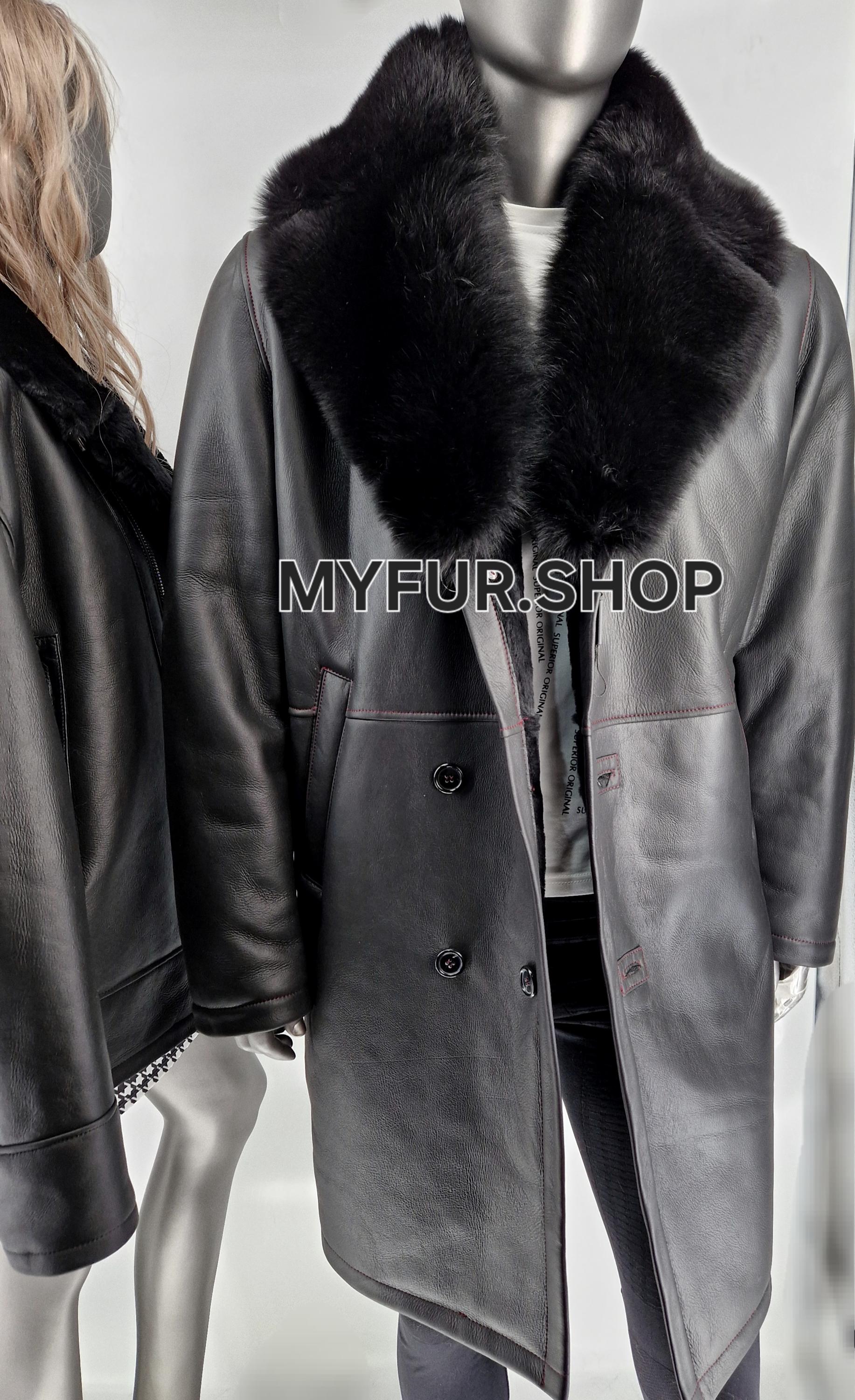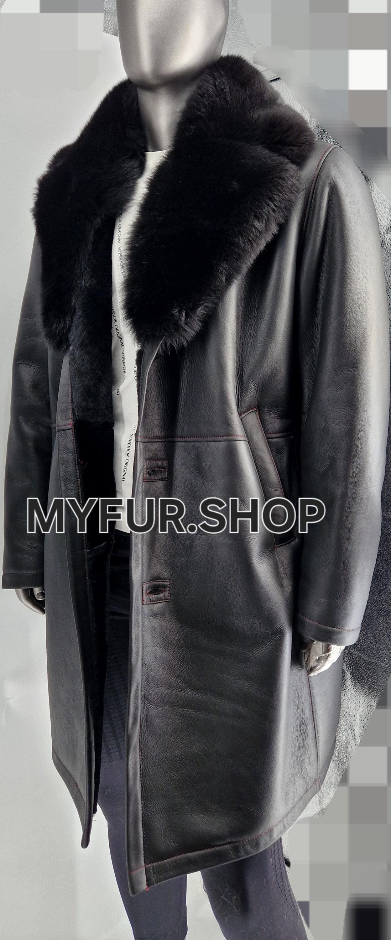 In pictures you see the Black sheepskin Coat sewed with burgundy color thread.