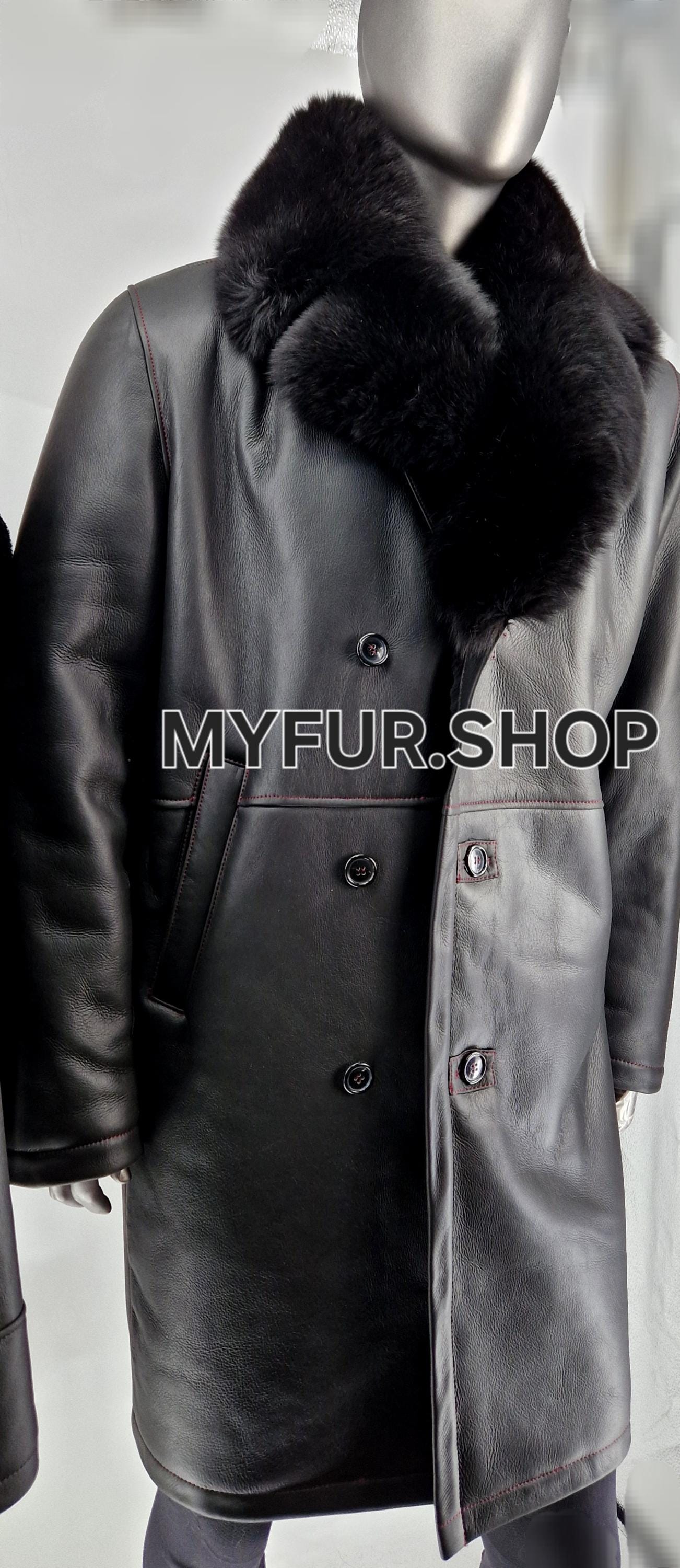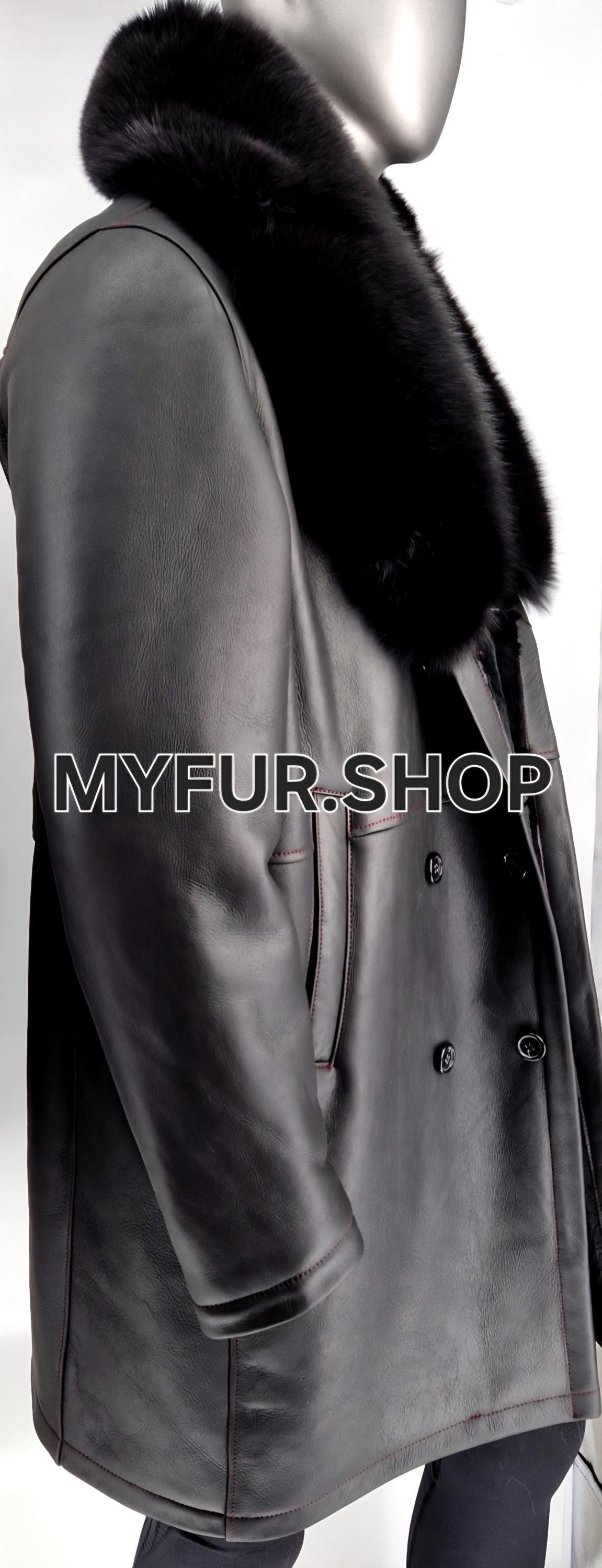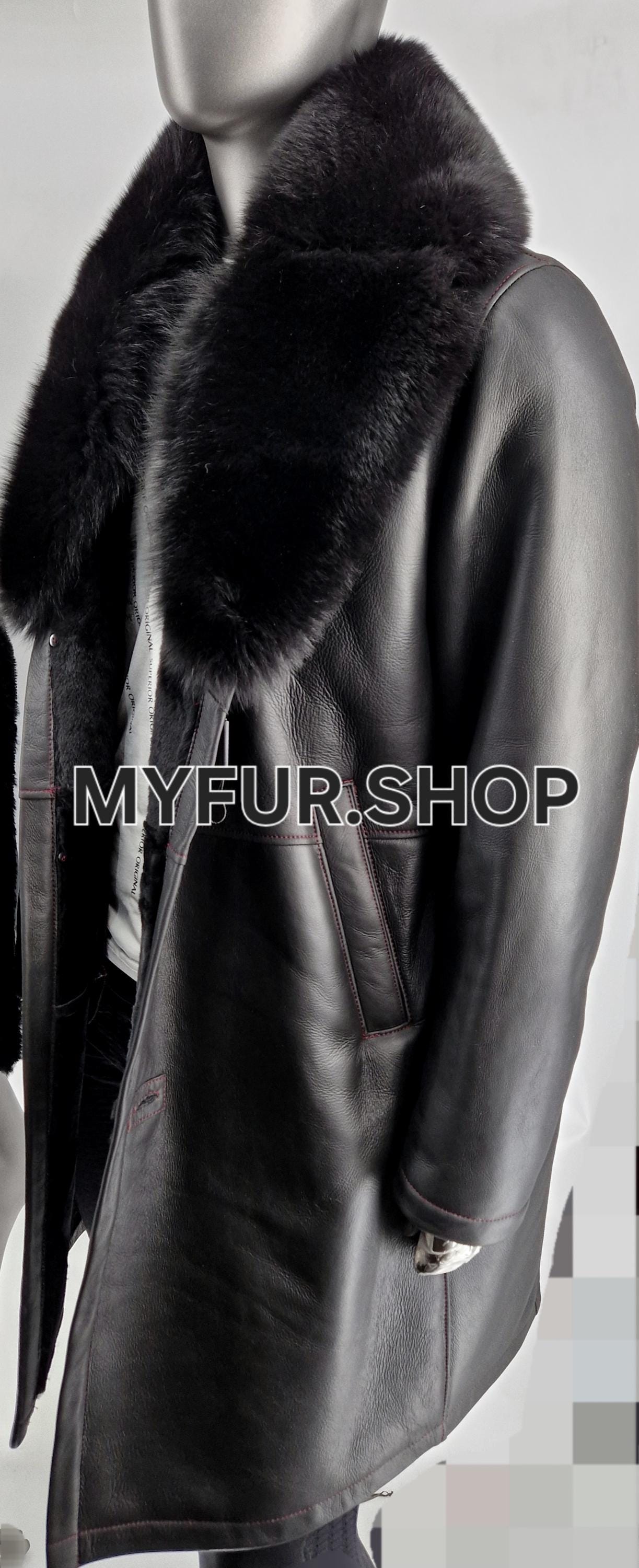 In pictures you see the Black sheepskin Coat sewed with burgundy color thread.