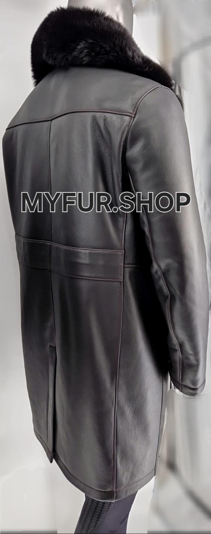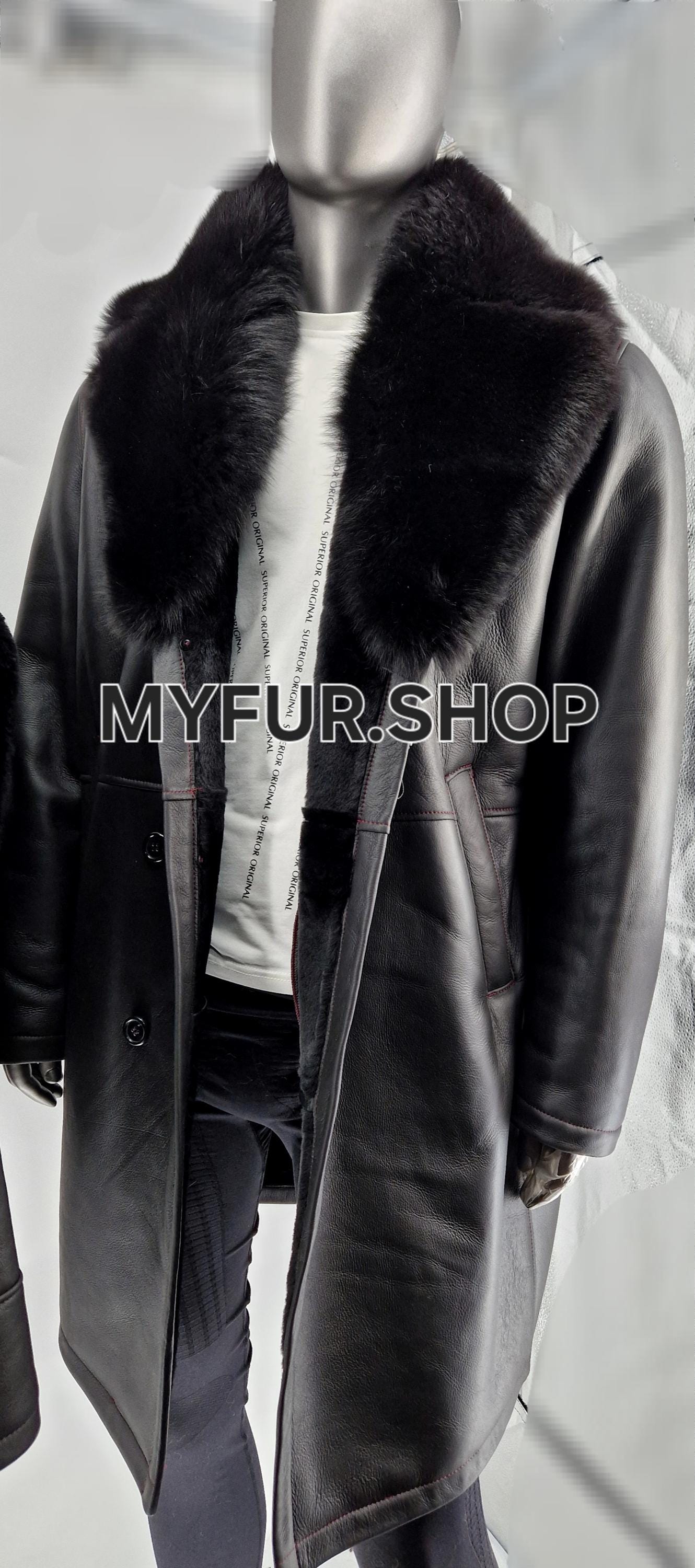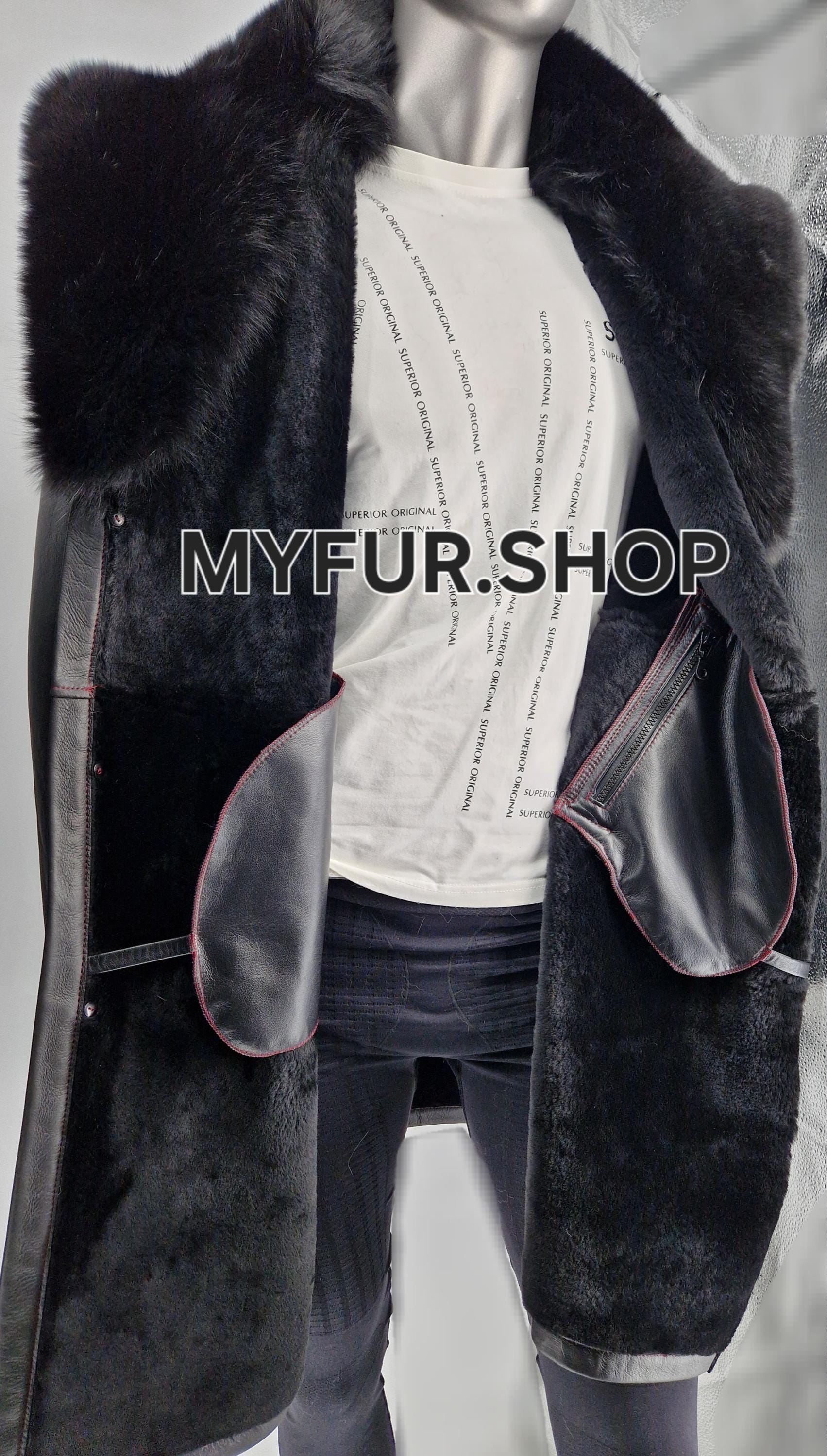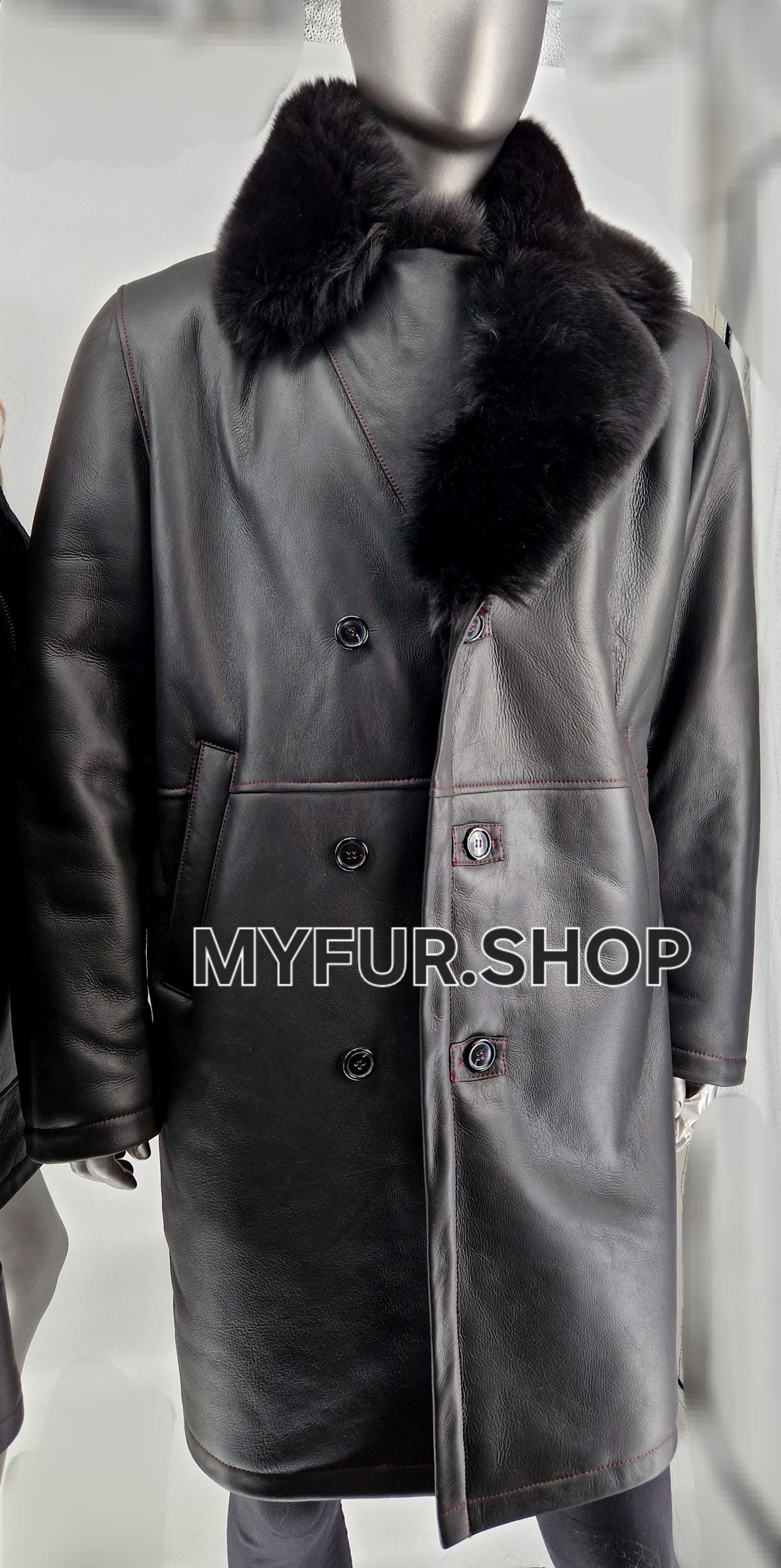 In pictures you see the Black sheepskin Coat sewed with burgundy color thread.