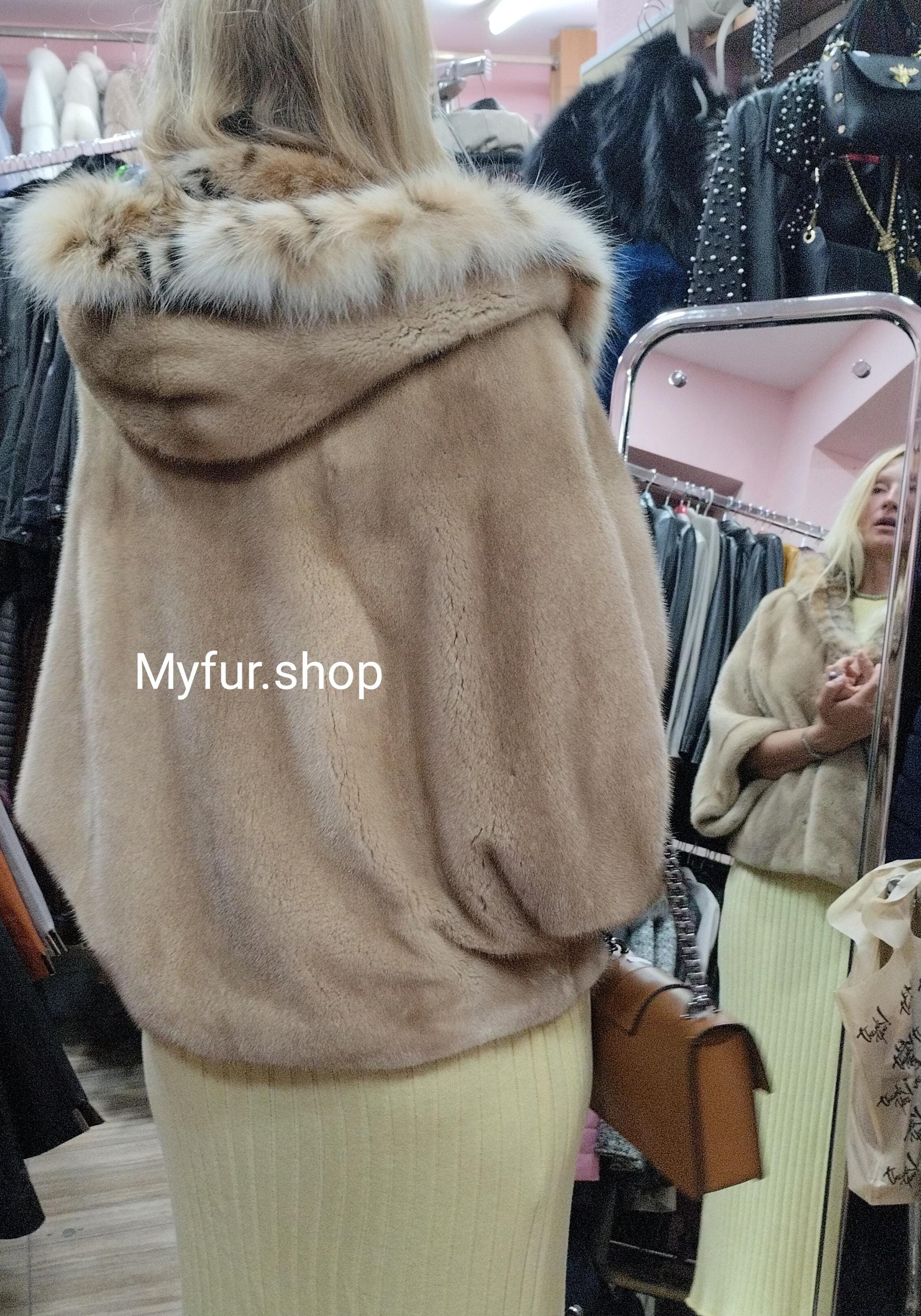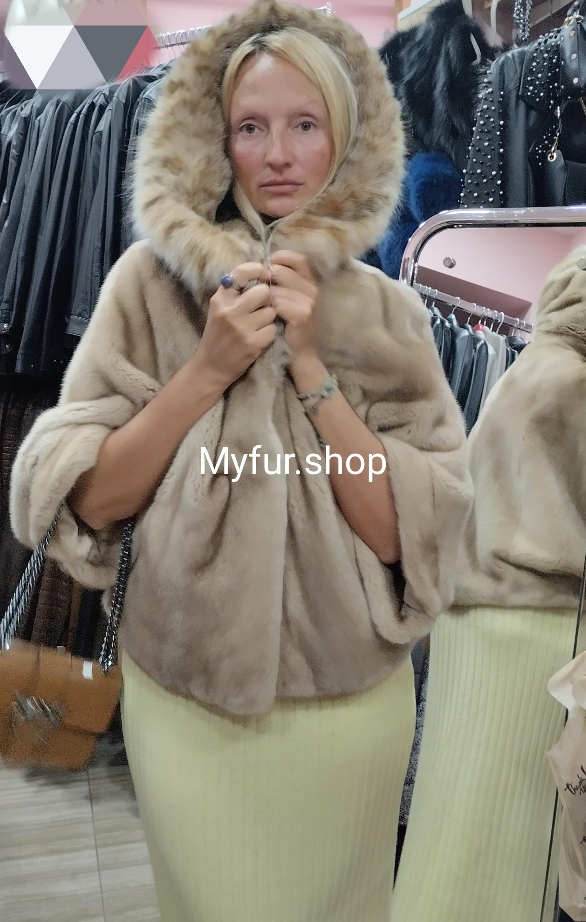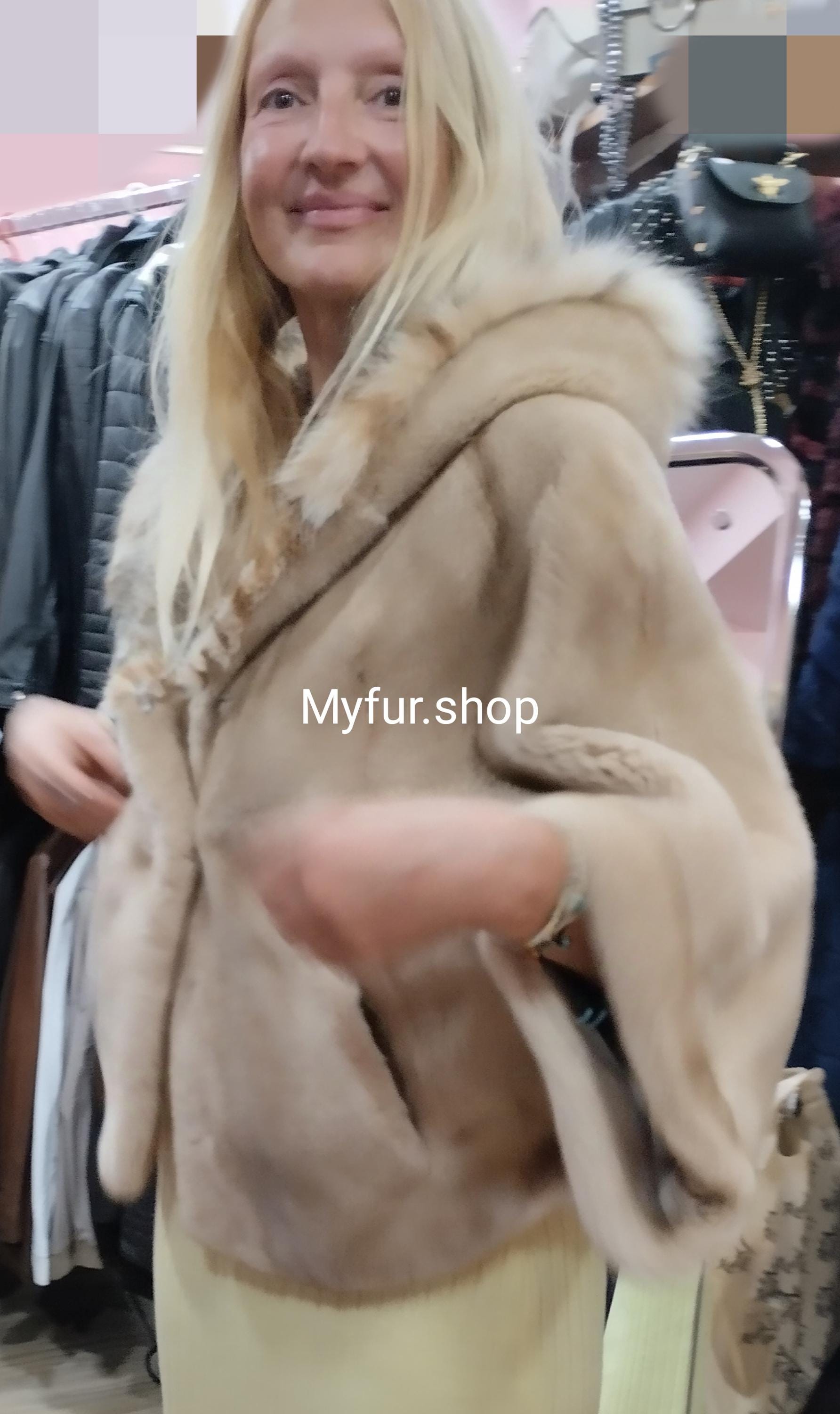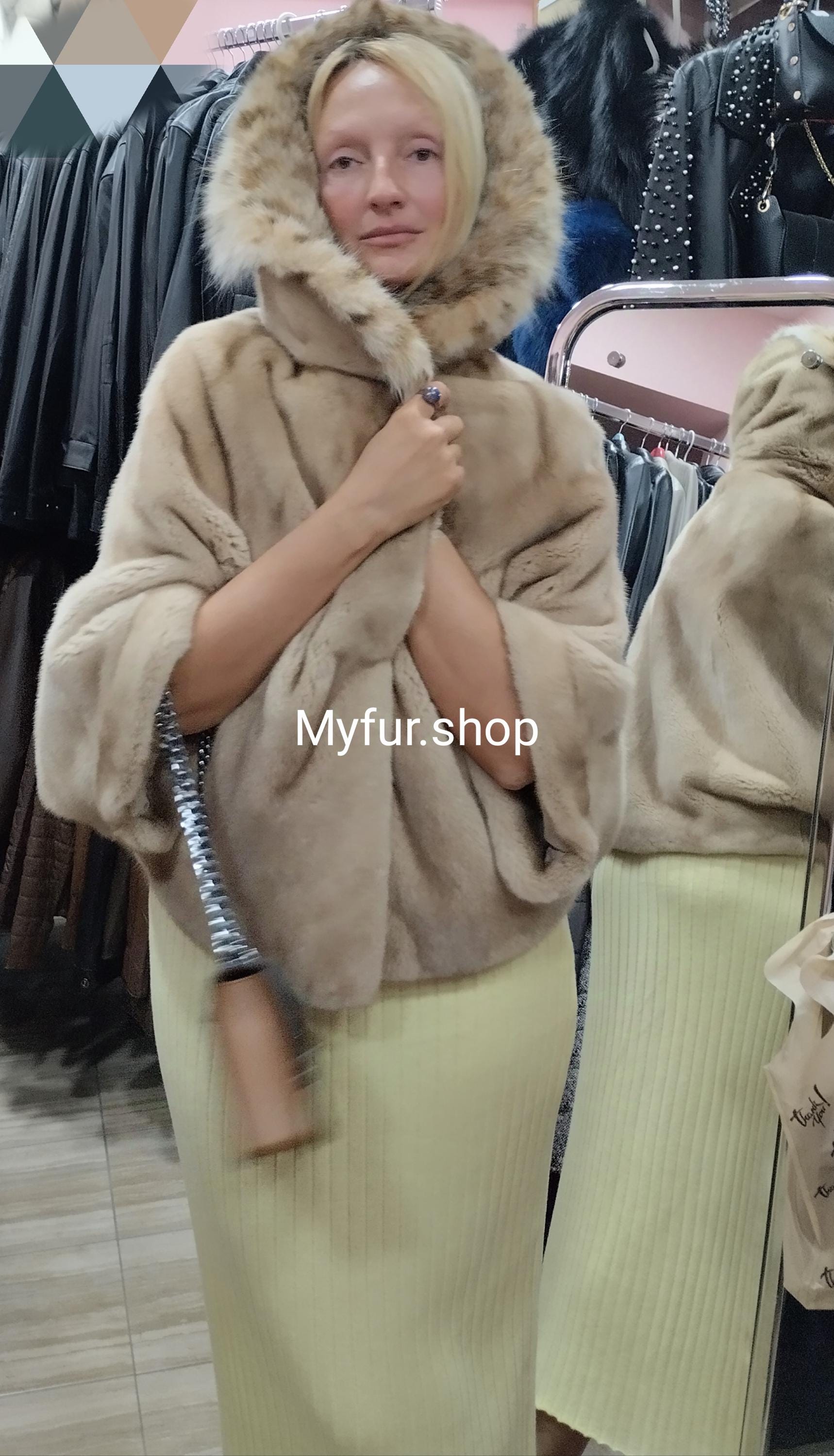 Natural Real Fine not sheared Mink fur Cape with 3/4 sleeves.