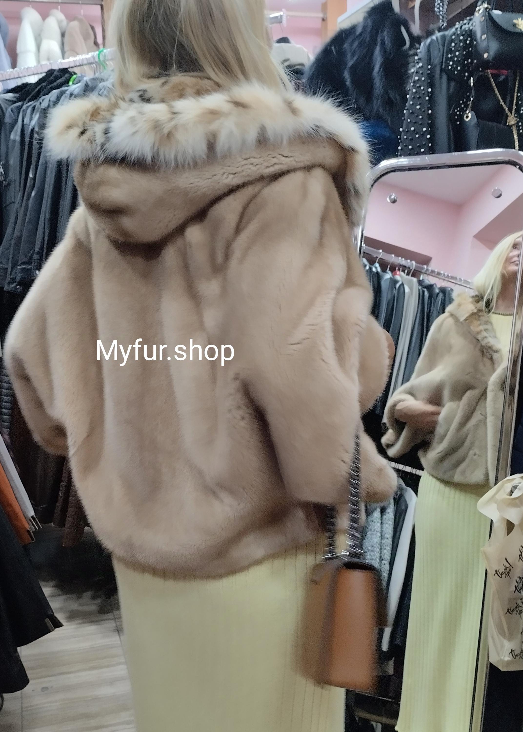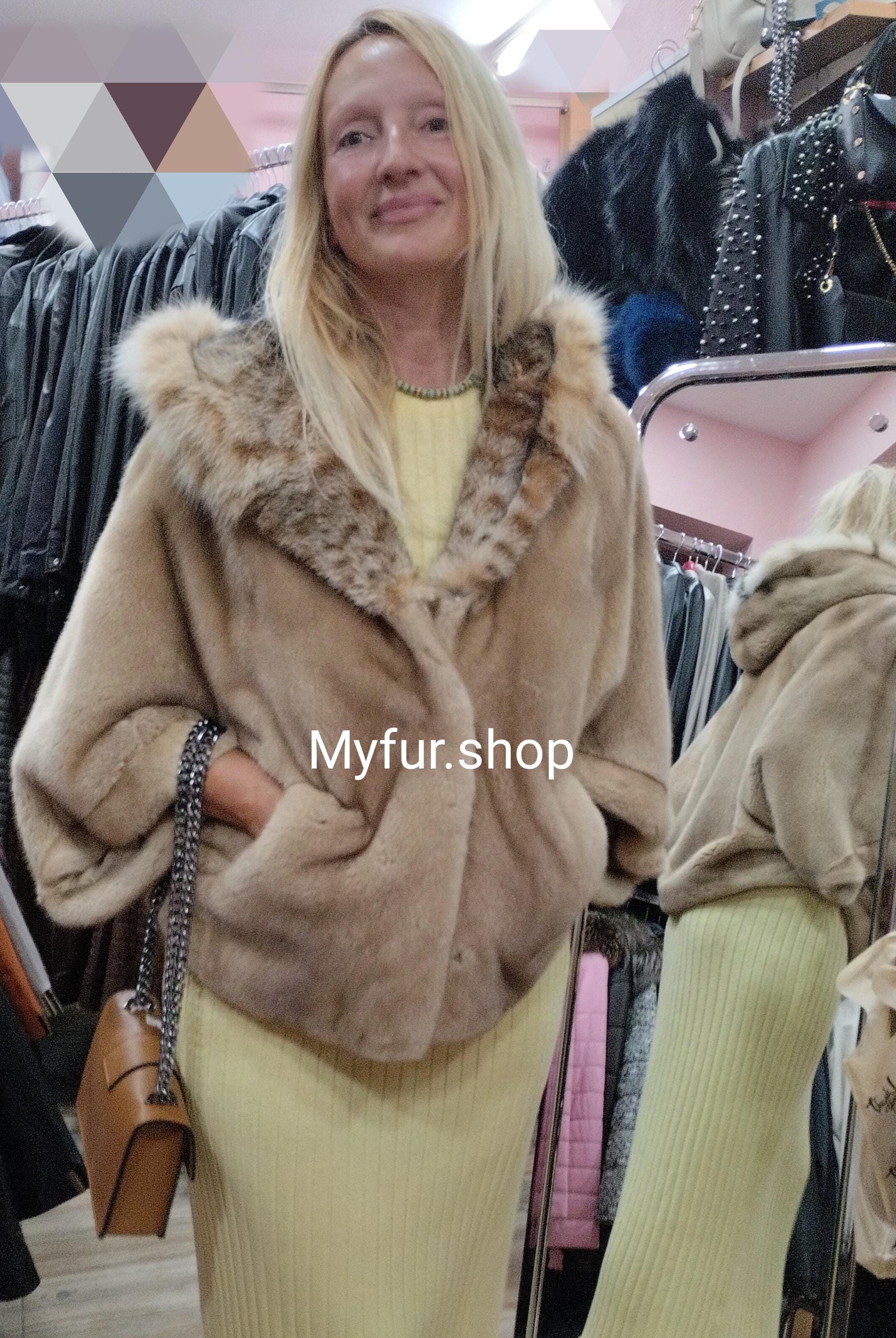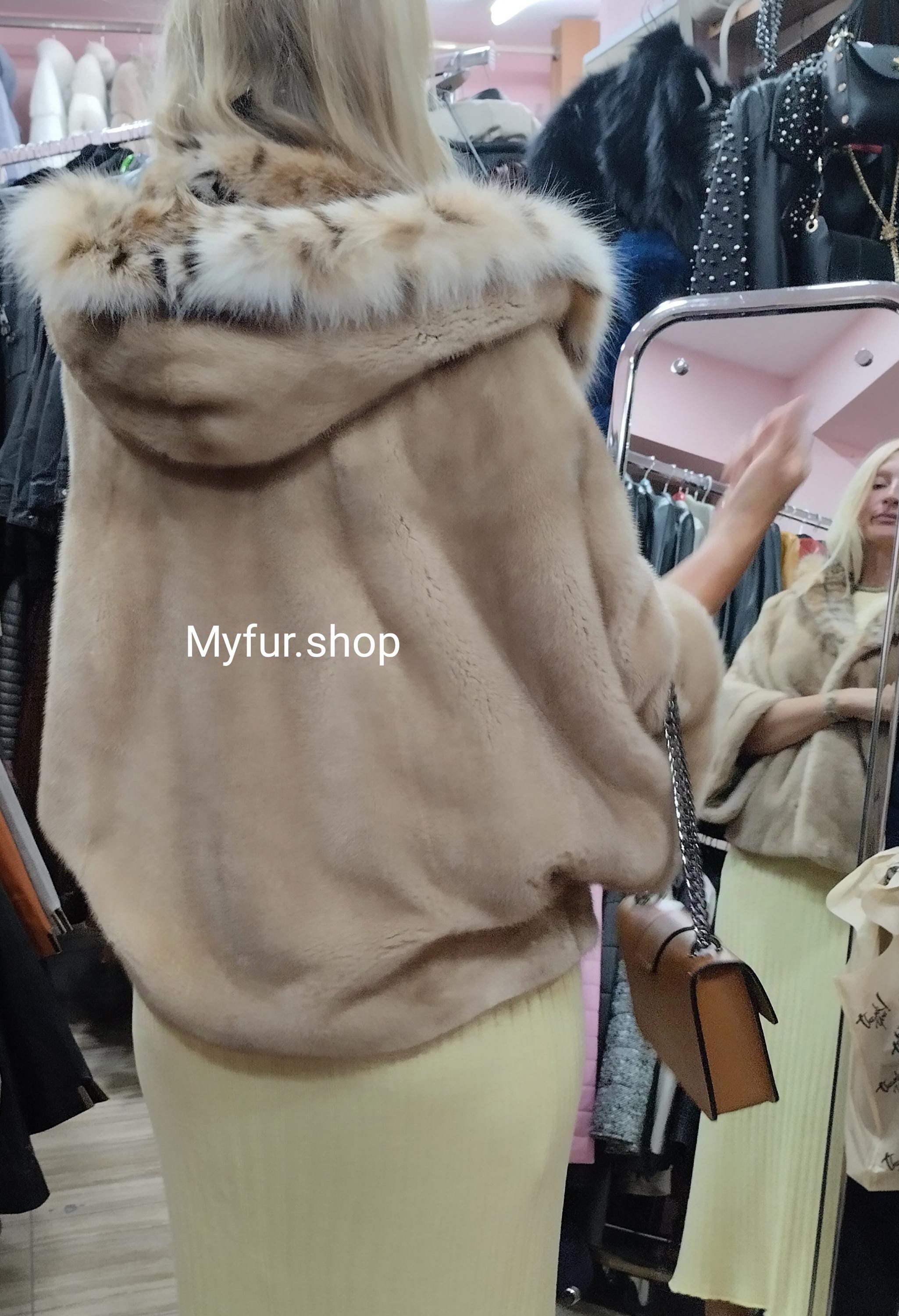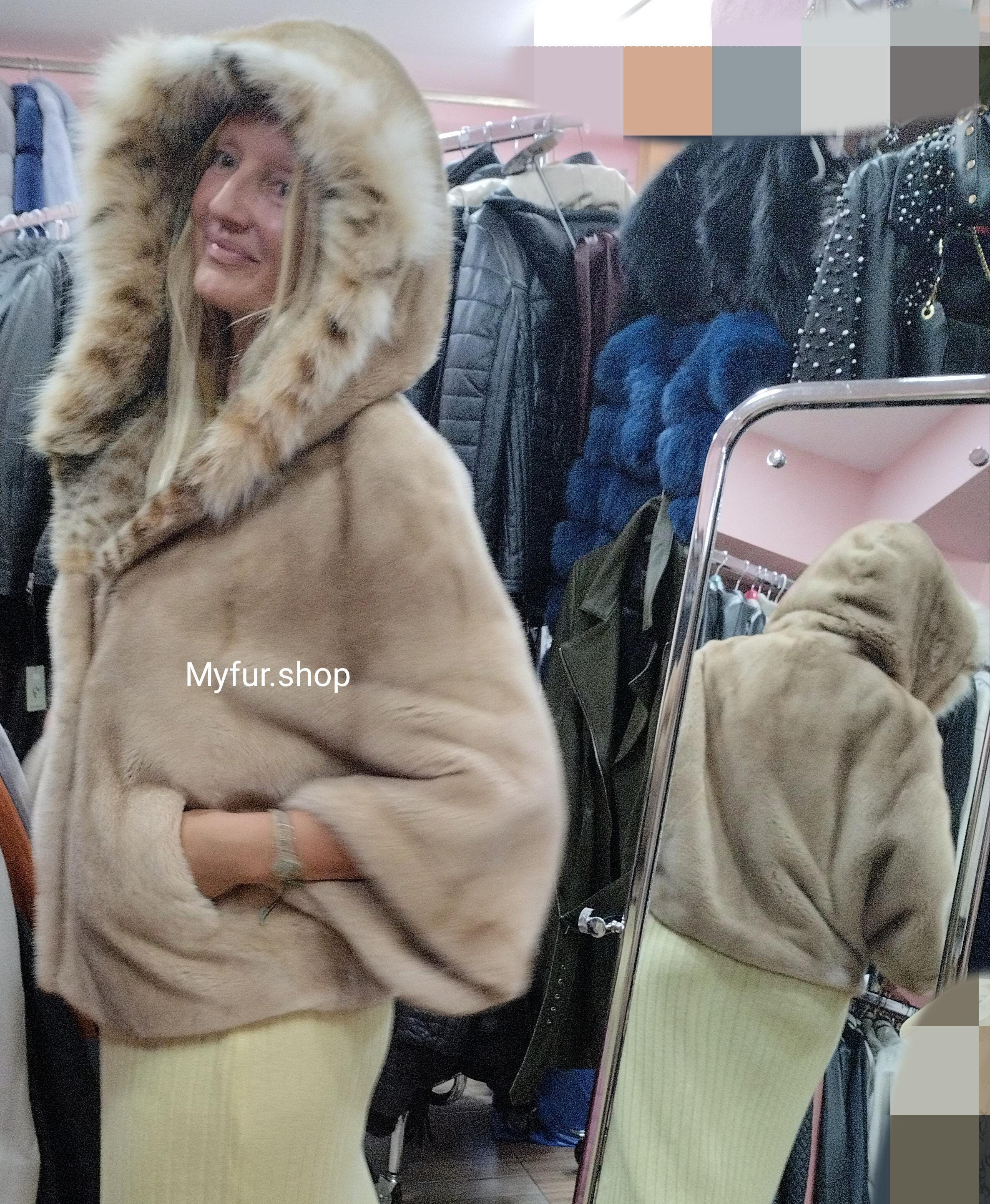 Natural Real Fine not sheared Mink fur Cape with 3/4 sleeves.