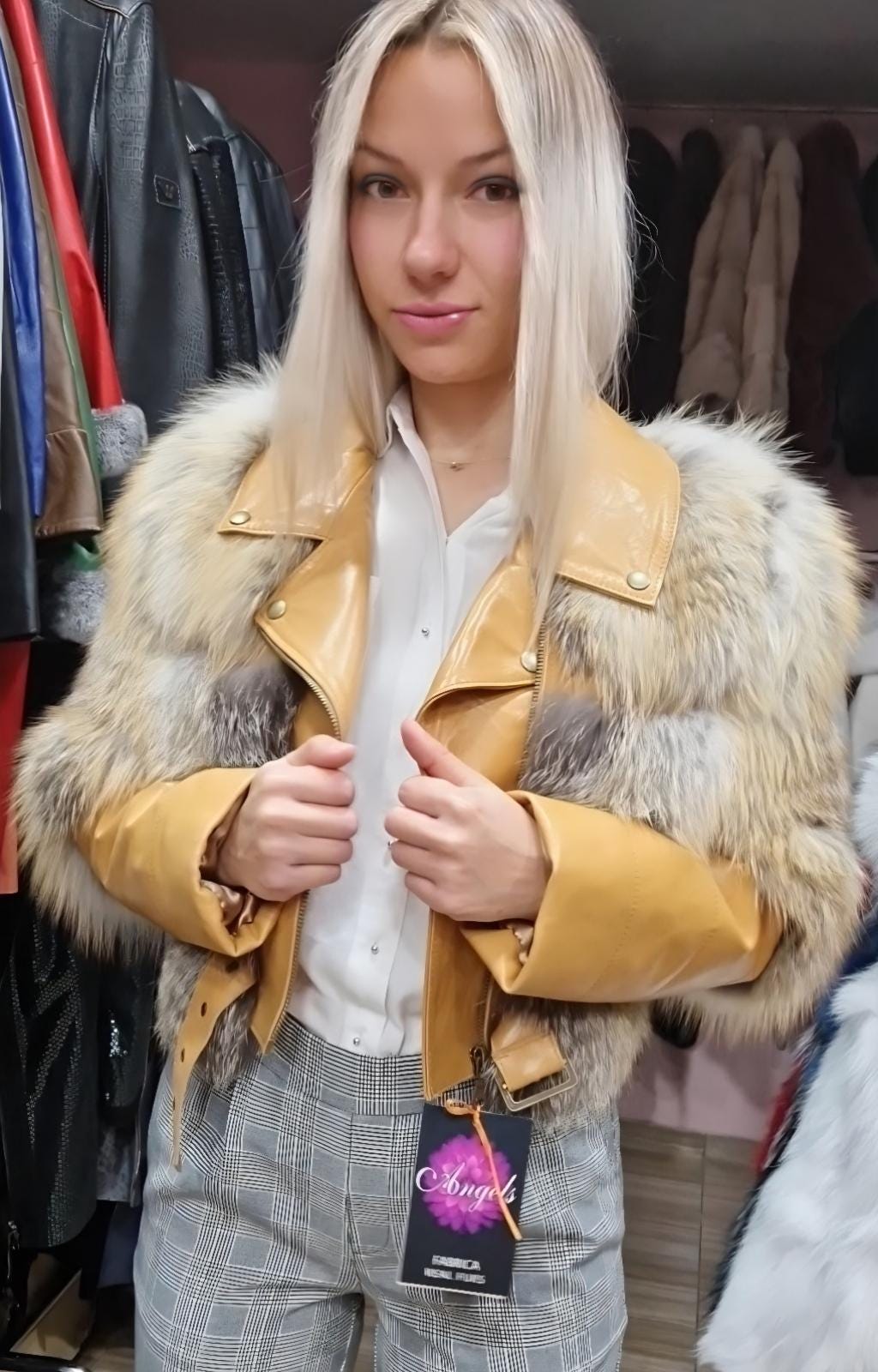 Soft fluffy Fox and excellent lamb leather in super modern perfecto model!