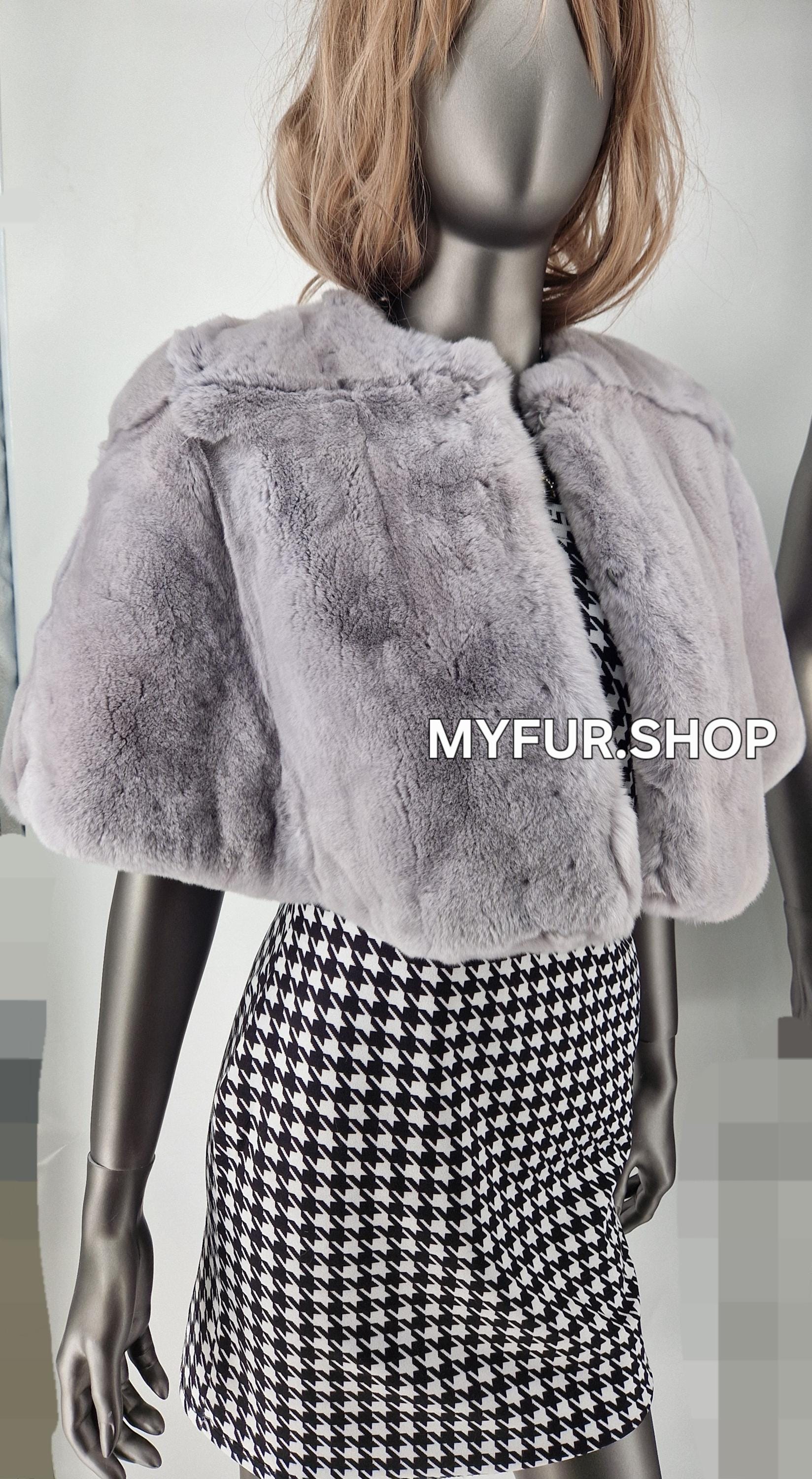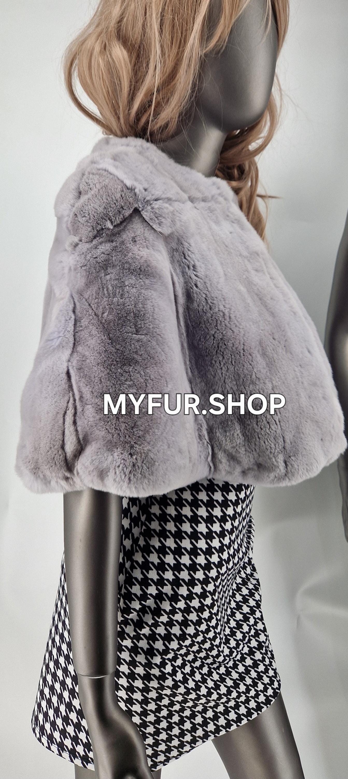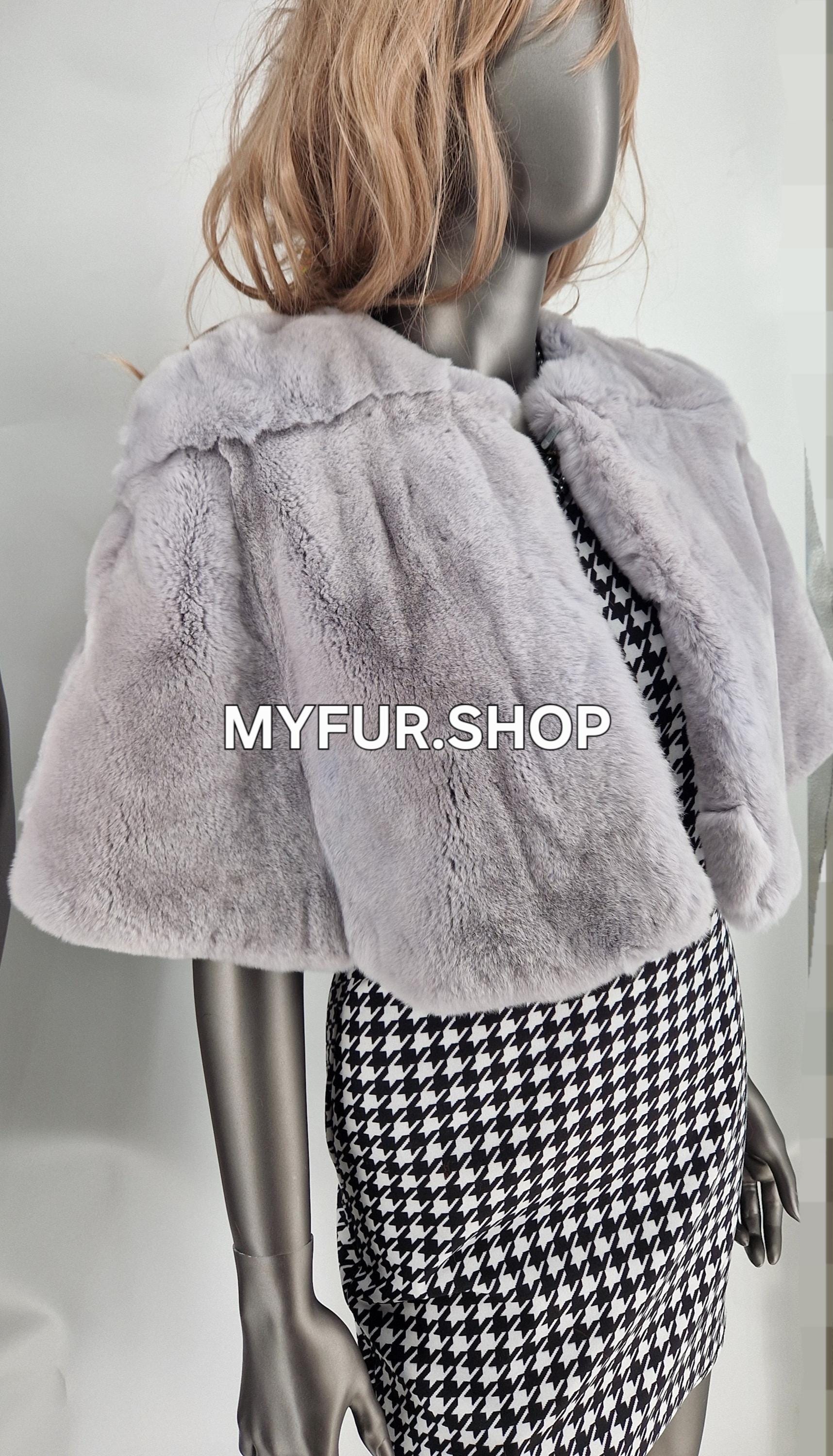 In pictures the light blue gray shade of Rex cape and in sizes Xxs/S/M are in Sale and ready to ship in 1-3 days from your order day.