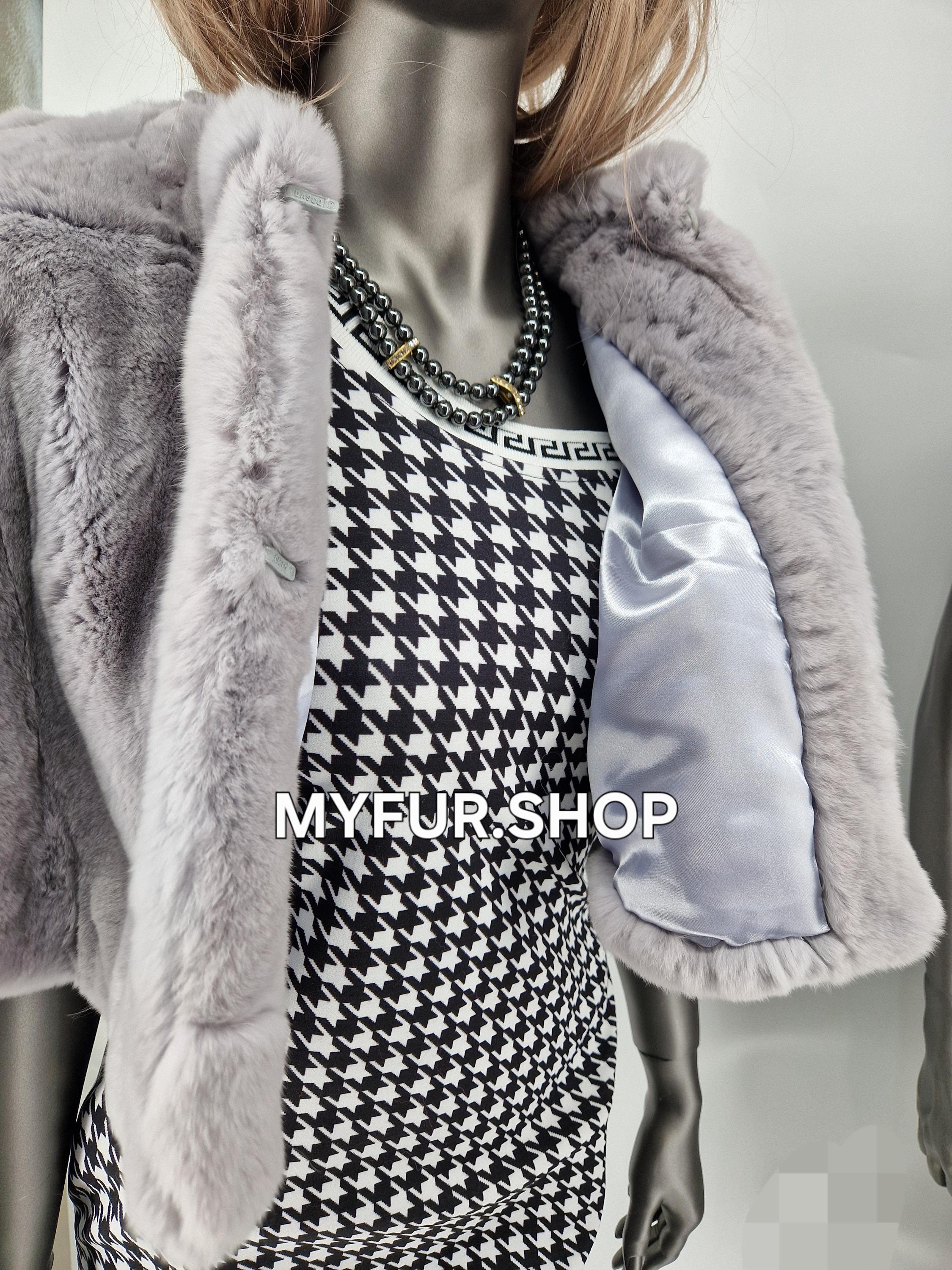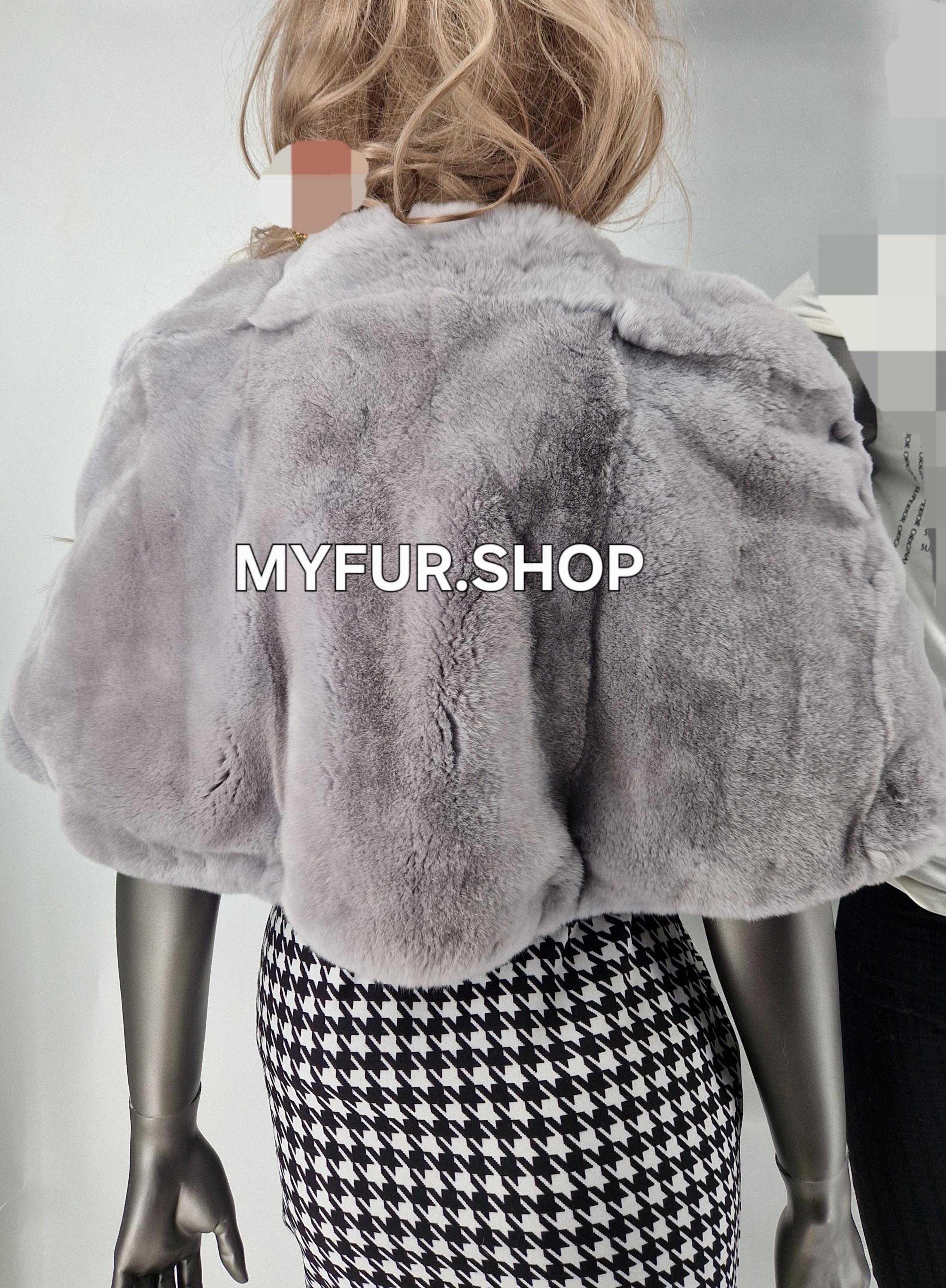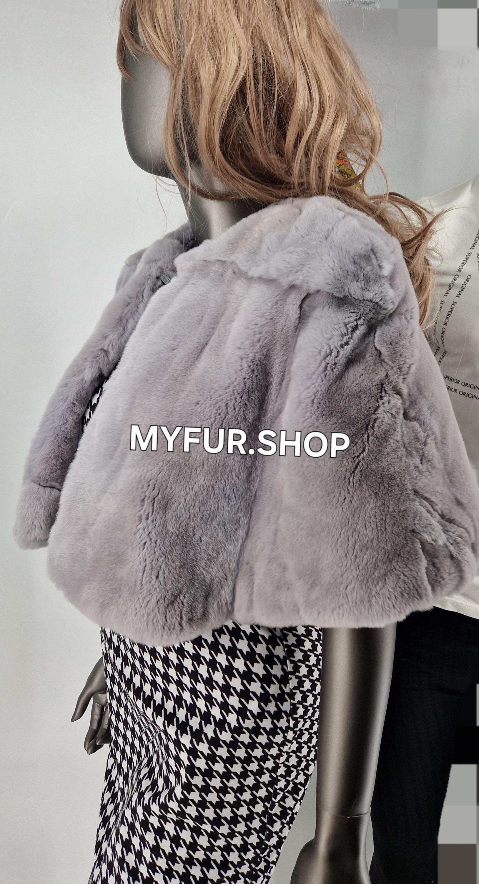 In pictures the light blue gray shade of Rex cape and in sizes Xxs/S/M are in Sale and ready to ship in 1-3 days from your order day.