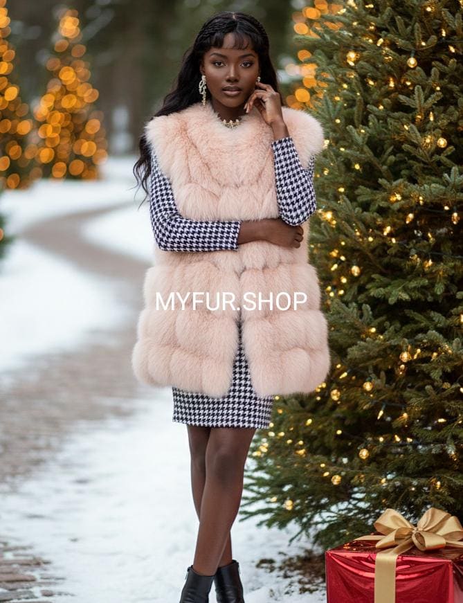 New,Natural Real fur vest from beautiful pink colored High Quality FULLPELTS FOXES!