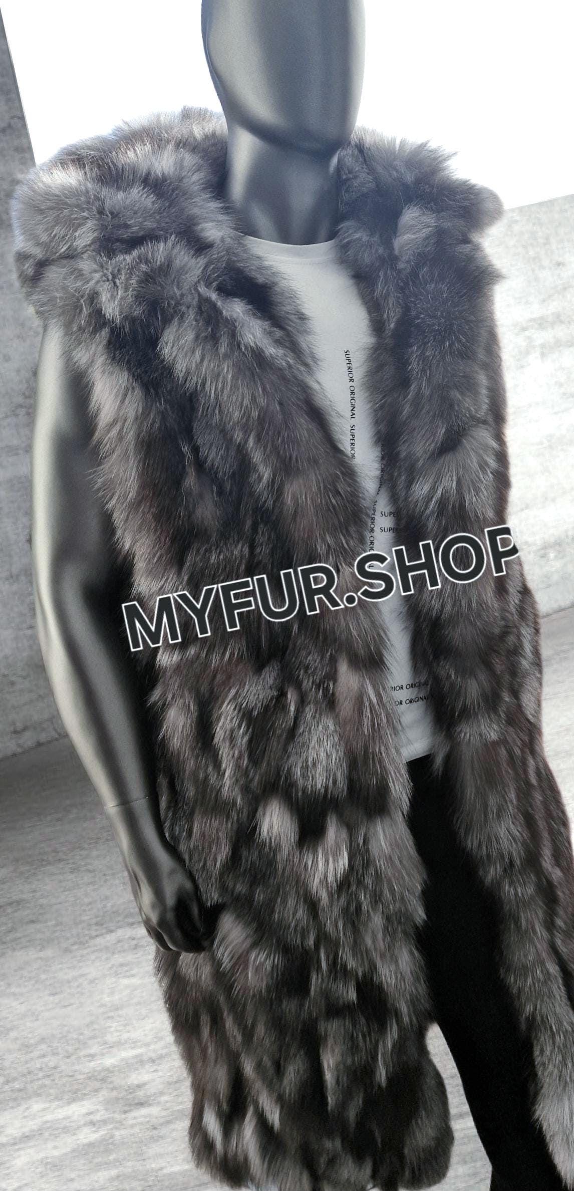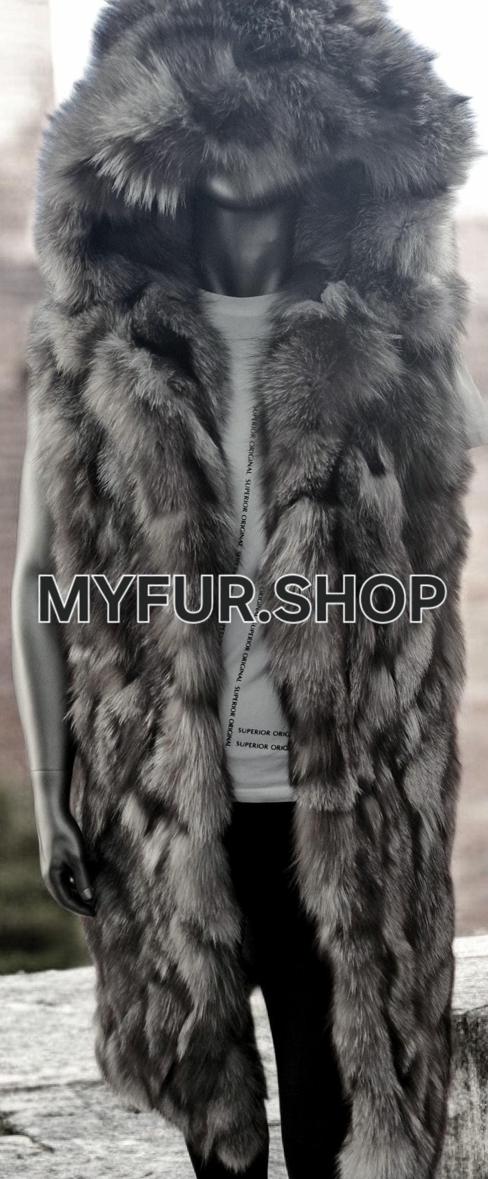 Hooded,Natural Real Men's Gur Vest from natural color SILVER Frost Fox! Fluffy!