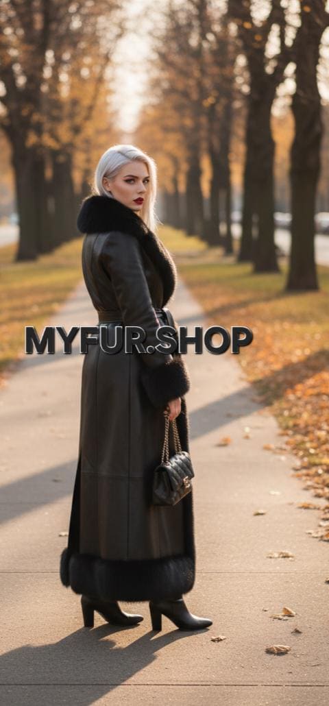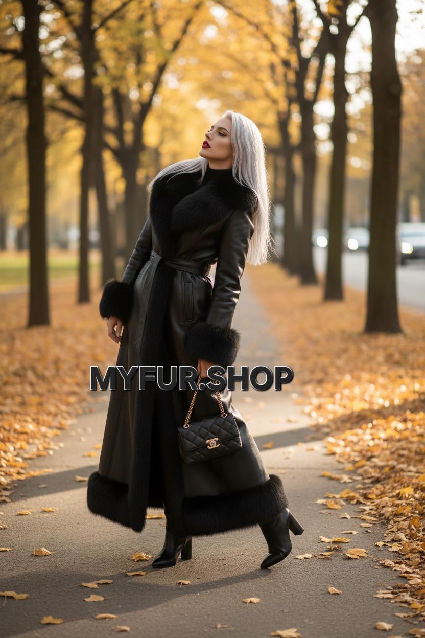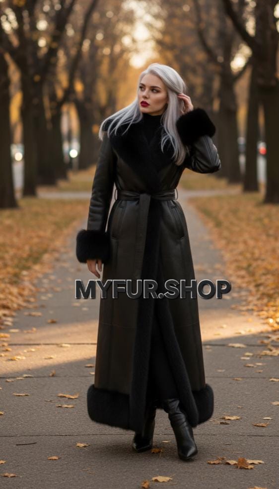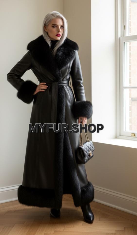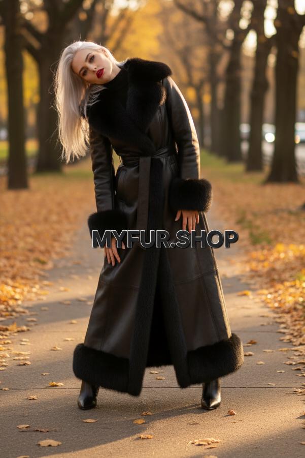 New,Natural Real fullskin Top quality LONG Sheepskin fur Coat with Beautiful FOX Collar,cuffs and fox trims all around the front and bottom part!