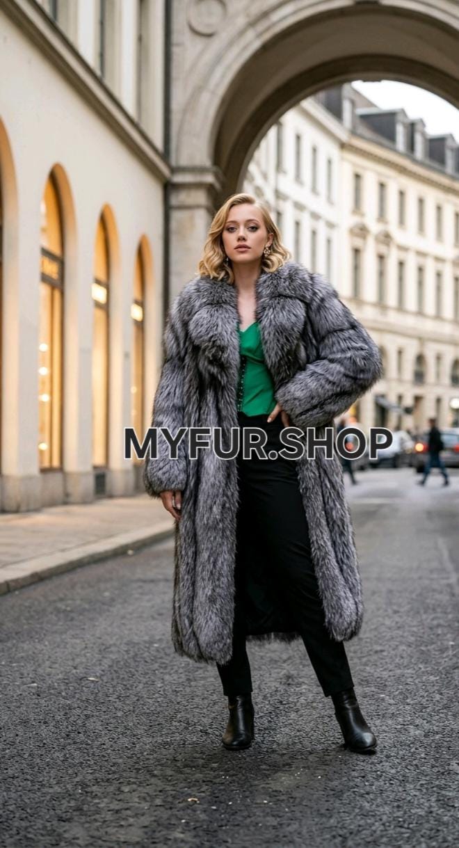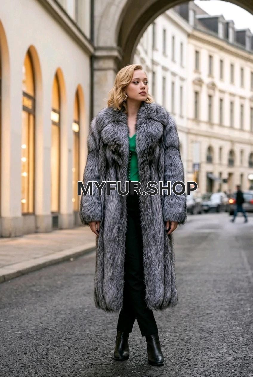 SUPER FLUFFY NEW,Real Natural SILVER FOX fur coat! The Ultimate fashion fur trend!