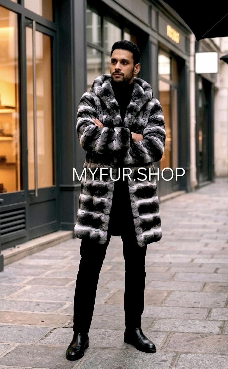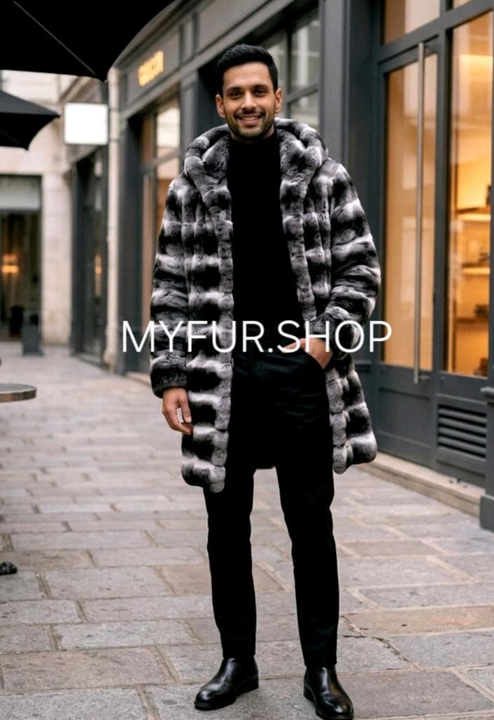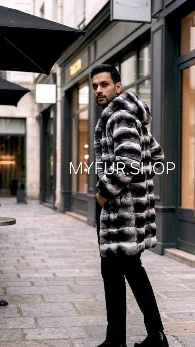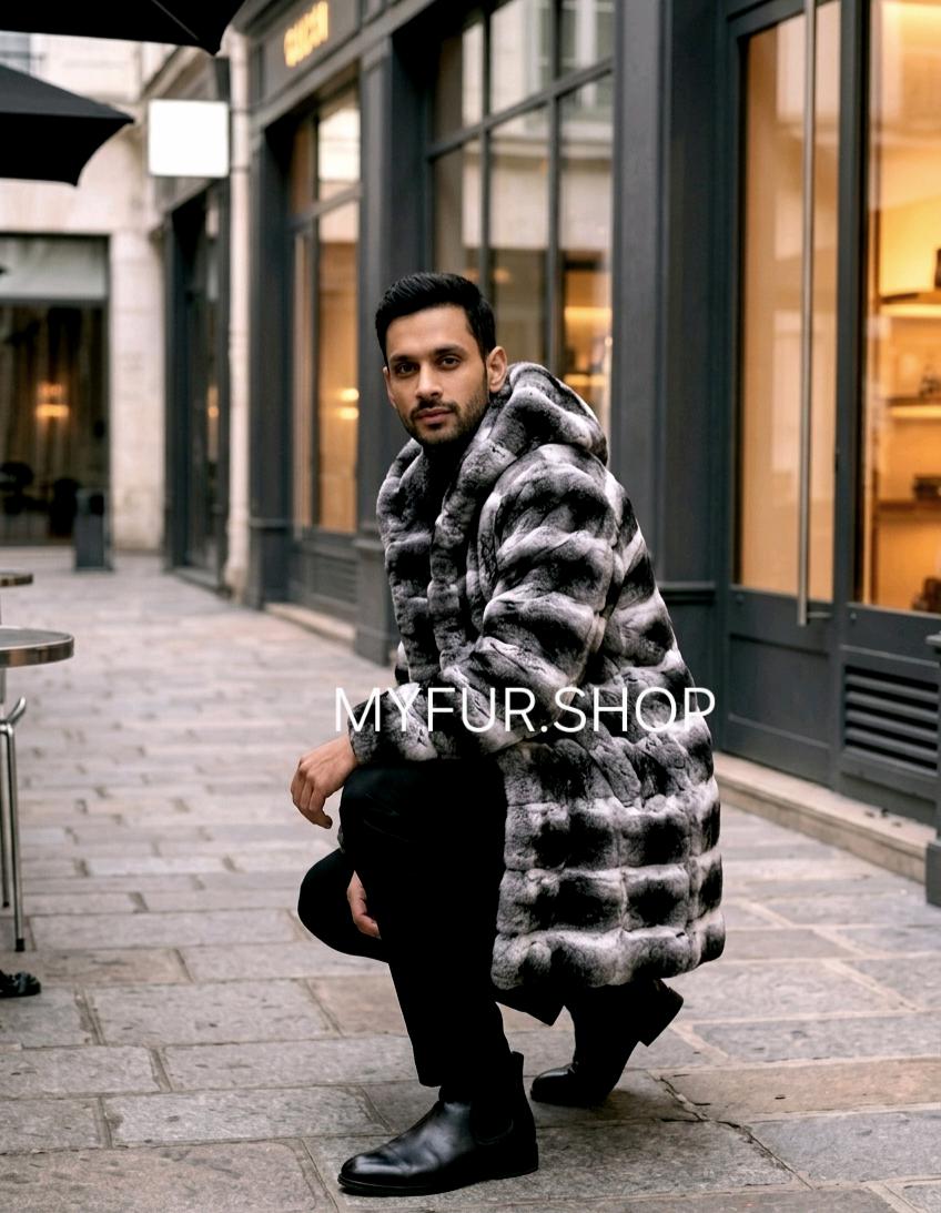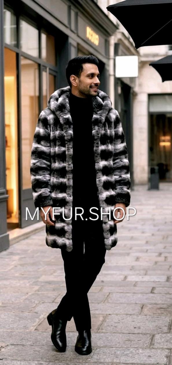 Natural Real Men's Hooded Long Hooded Fur Coat!