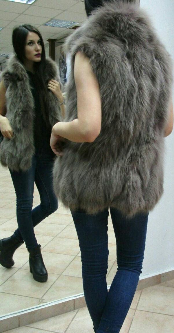 New Natural Real fur Vest from Amazing dark nude half fullskin fox!