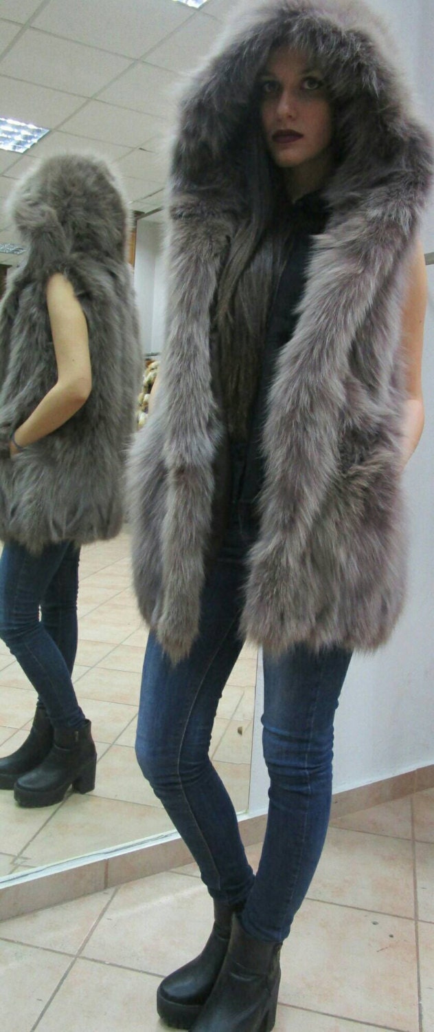 New Natural Real Fox Hooded vest in Amazing dark nude color!Super and high quality half fullskin fox!