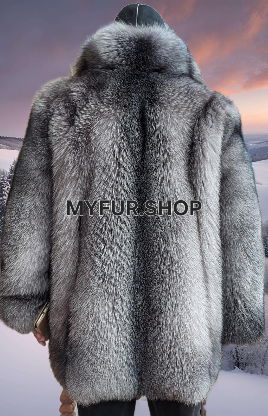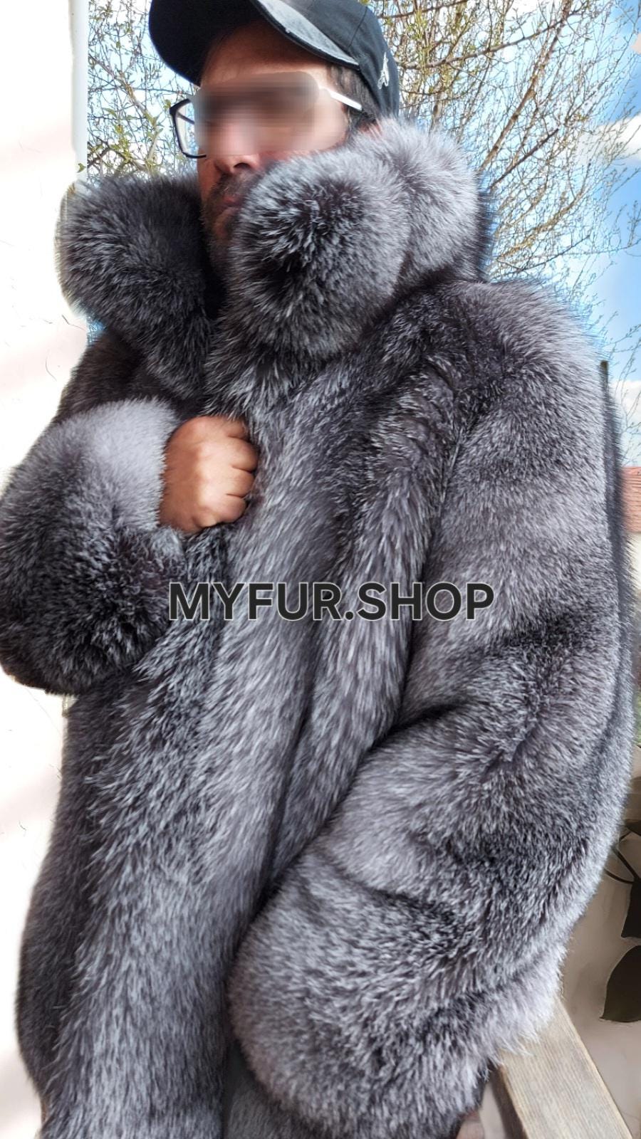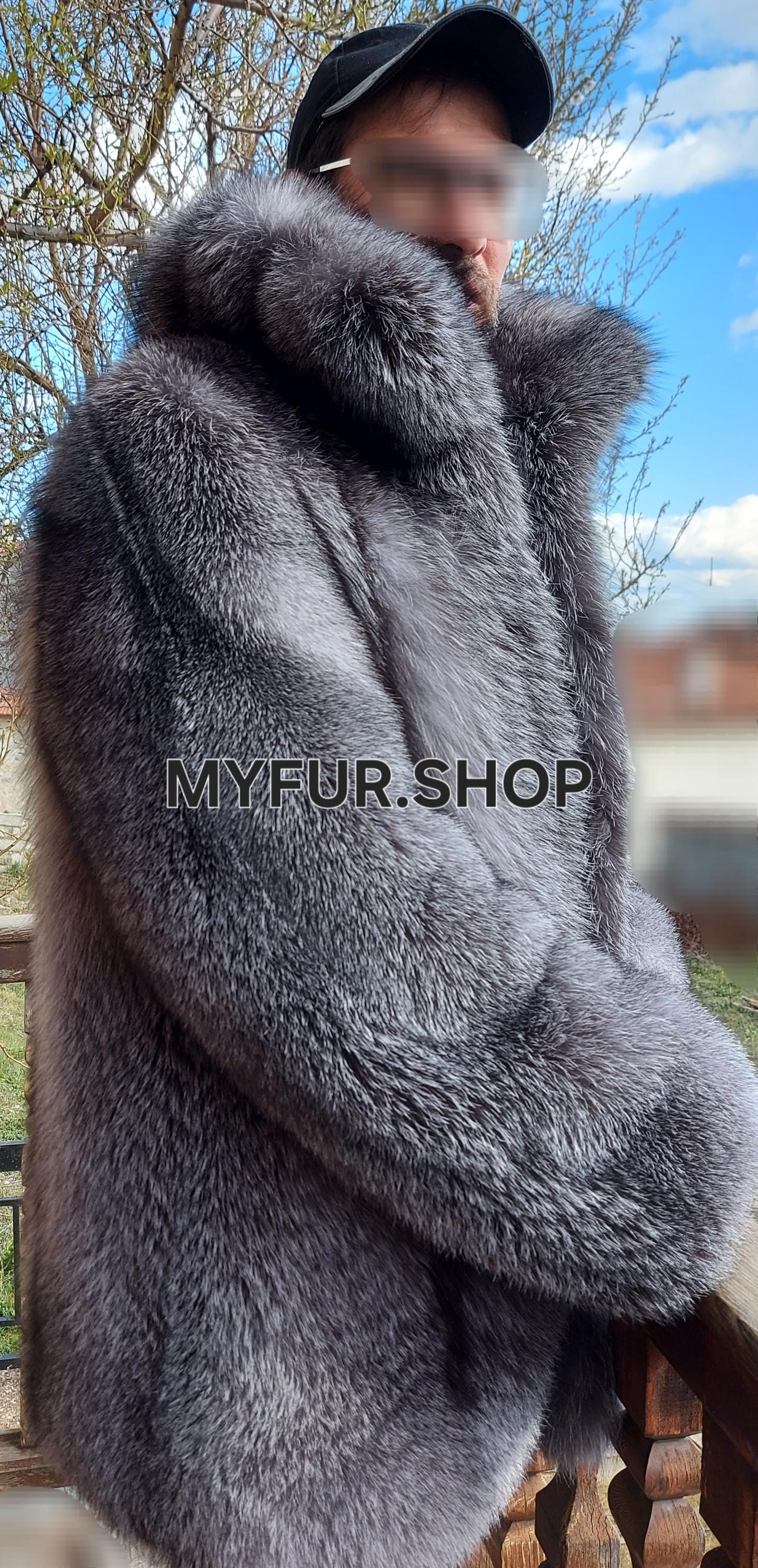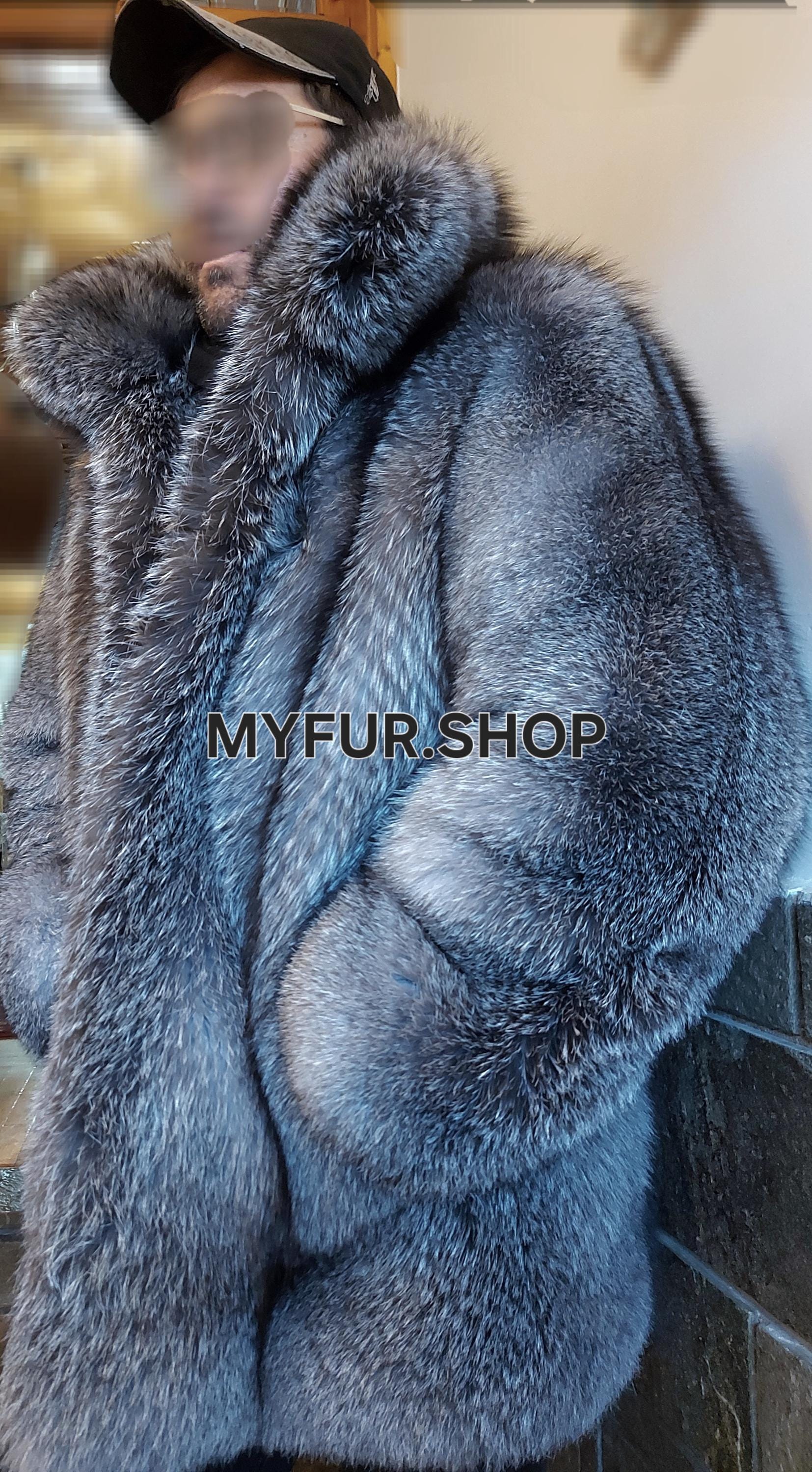 New Natural Real Men's Fur coat from Natural color SILVER FROST FOX FULLPELTS!